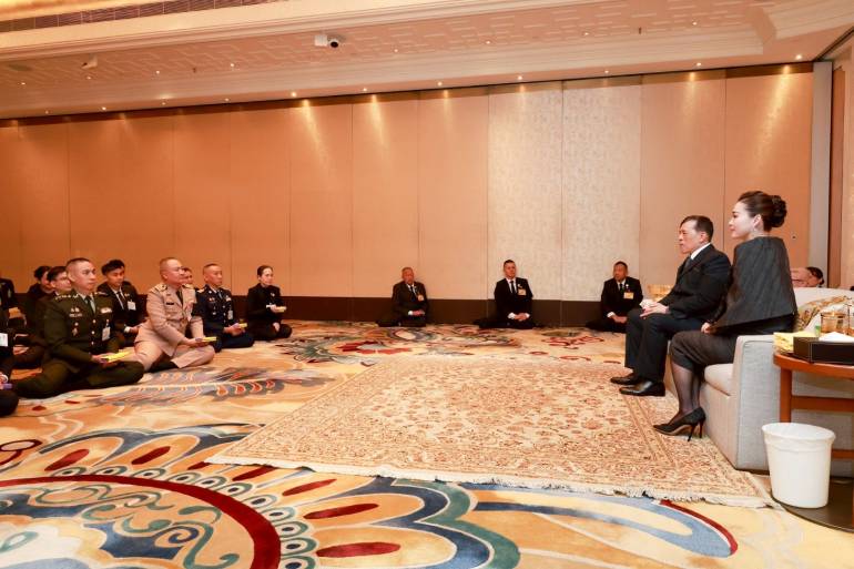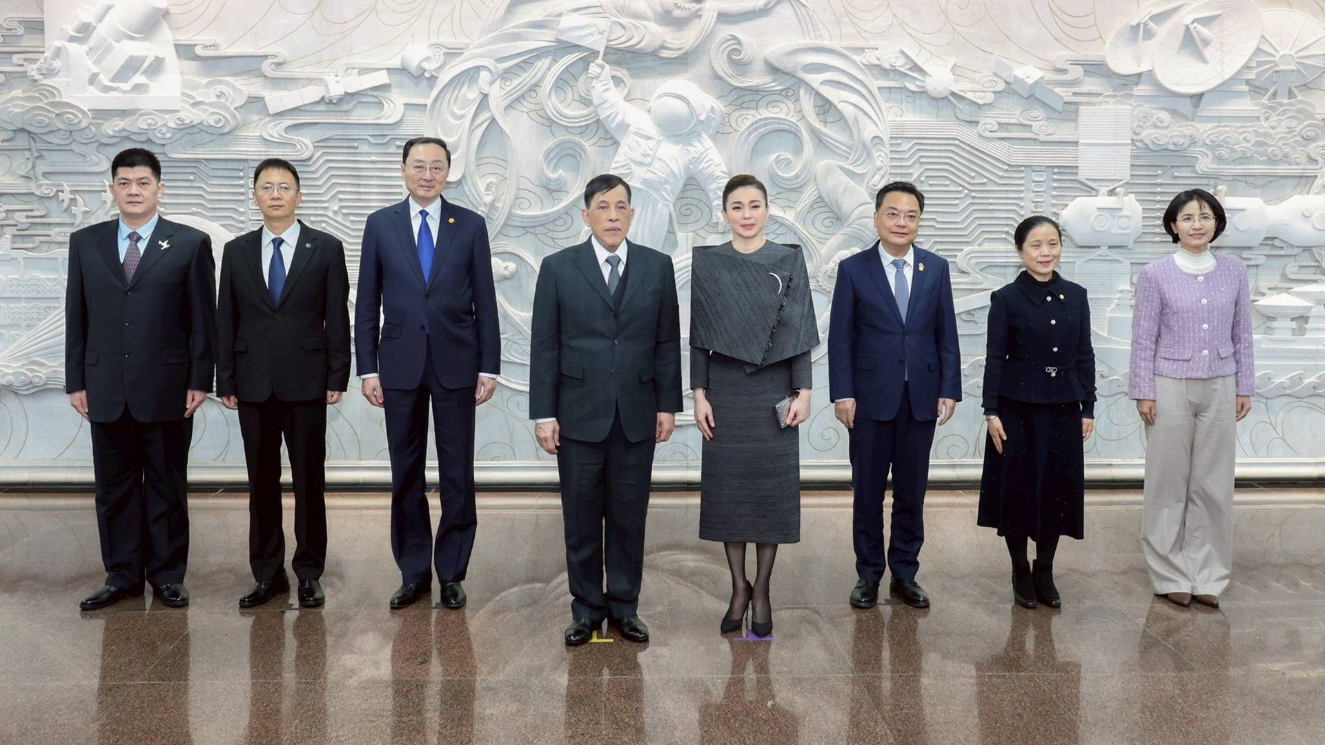 โดยมี นายเฉิน หมิงโป ประธานกรรมการกลุ่มบริษัทวิทยาศาสตร์เทคโนโลยีการบินอวกาศแห่งประเทศจีน, ศาสตราจารย์หลี่ ต้าหมิง ประธานบริหารสูงสุด และประธานเจ้าหน้าที่บริหารสถาบันเทคโนโลยีด้านอวกาศจีน พร้อมผู้บริหารฯ รอเฝ้าทูลละอองธุลีพระบาทรับเสด็จ