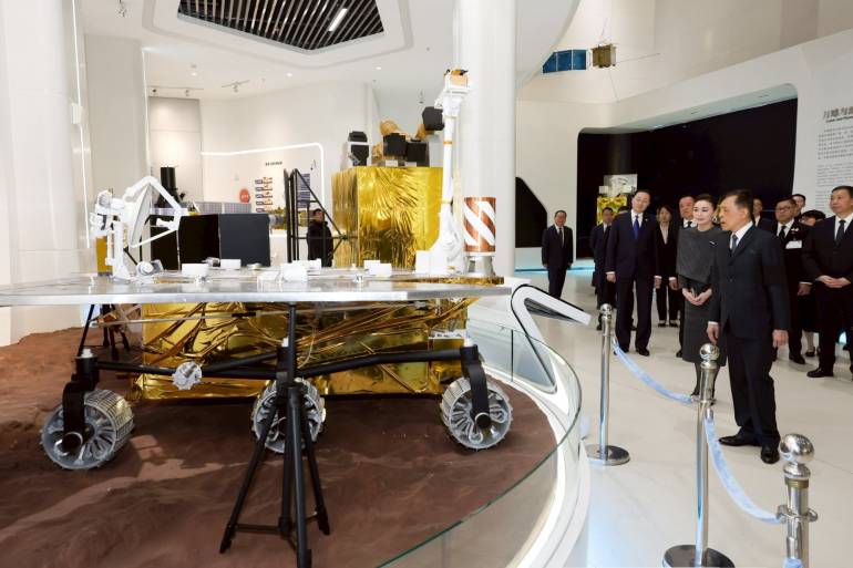 โอกาสนี้ ทอดพระเนตรยานอวกาศและผลิตภัณฑ์อวกาศที่เคยใช้จริงและแบบจำลอง อาทิ ดาวเทียม DFH-1, ยานอวกาศมนุษย์ควบคุมเสิ่นโจว-5, และยานสำรวจดวงจันทร์ไร้คนขับ ฉางเอ๋อ-1 ชิ้นส่วนของยานอวกาศเสิ่นโจว-17