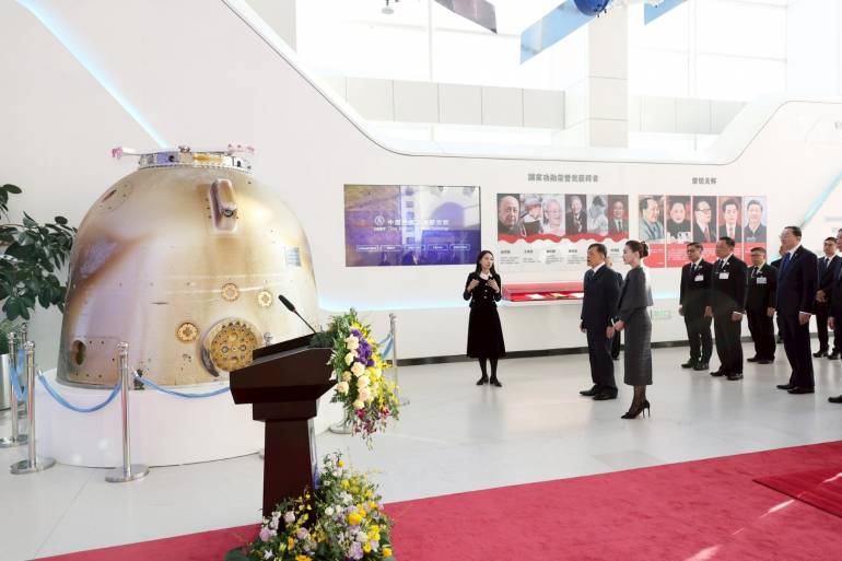 พระบาทสมเด็จพระเจ้าอยู่หัว และสมเด็จพระนางเจ้า ฯ พระบรมราชินี เสด็จพระราชดำเนินไปยังสถาบันเทคโนโลยีด้านอวกาศจีน ทอดพระเนตรเมืองอวกาศกรุงปักกิ่ง