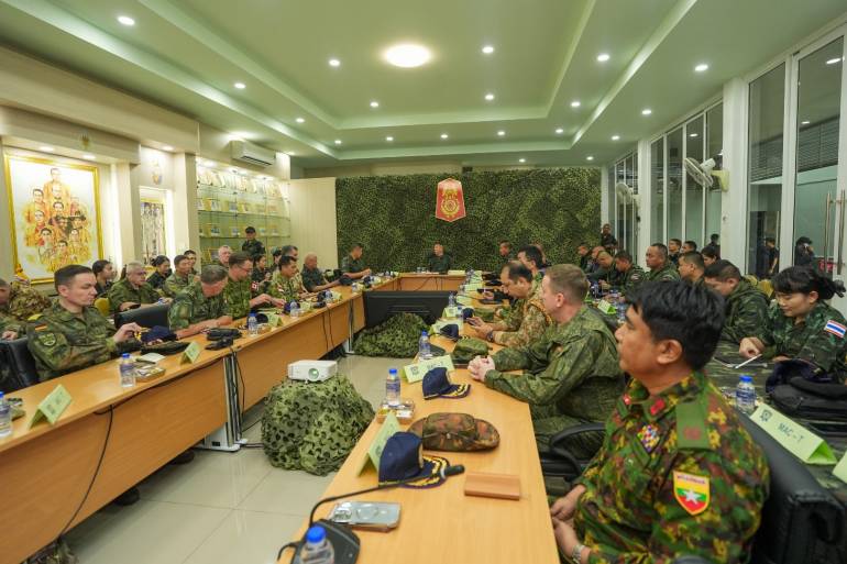 โดยมี พล.ท.ธีรนันท์ นันทขว้าง เจ้ากรมข่าวทหารบก เป็นผู้แทนกองทัพบก พล.ต.เบญจพล เดชาติวงศ์ ณ อยุธยา ผู้บัญชาการกองพลทหารราบที่ 2 รักษาพระองค์ ผู้บัญชาการกองกำลังบูรพา ให้การต้อนรับ เพื่อรับฟังการบรรยายสรุปเกี่ยวกับสถานการณ์ด้านความมั่นคงในพื้นที่ชายแดนไทย-กัมพูชา ทั้งการเก็บกู้ทุ่นระเบิด การบริหารจัดการพื้นที่ และการปราบปรามขบวนการสแกมเมอร์