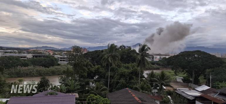 ล่าสุด เมื่อเย็นวันที่ 18 พ.ย.2568 ทหารเมียนมา และบีจีเอฟ. ได้ระเบิดอาคาร สำนักงานในพื้นที่เคเคปาร์ค 2 ครั้ง ทำให้บ้านเรือนคนไทย ต้องสั่นสะเทือนจากแรงระเบิด และมีบ้านได้รับความเสียหาย 5 หลัง