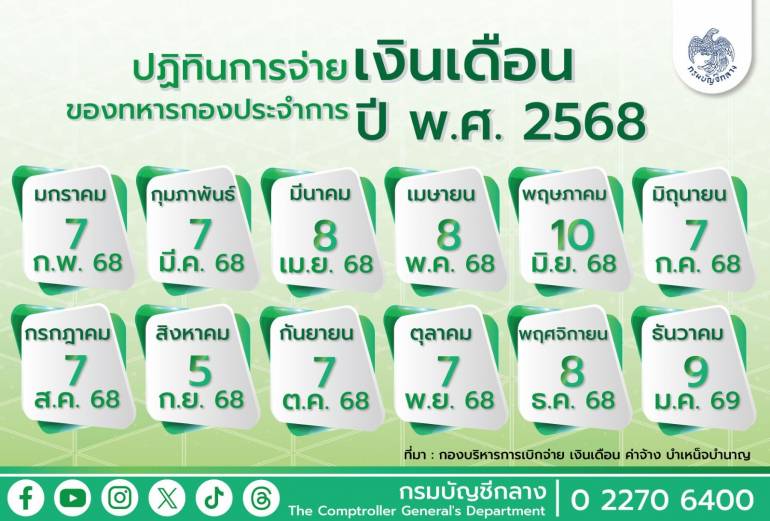 เงินเดือนทหารกองประจำการ วันศุกร์ที่ 9 ม.ค.2569