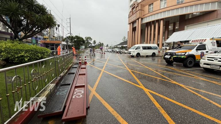 วันนี้ (20 พ.ย.2568) เวลาประมาณ 13.40 น. เจ้าหน้าที่โรงพยาบาลมหาราชนครศรีธรรมราช จ.นครศรีธรรมราช เร่งขนย้ายกระสอบทรายและแผ่นเหล็กขนาดใหญ่มาประจำการด้านหน้าอาคาร เพื่อป้องกันน้ำท่วม