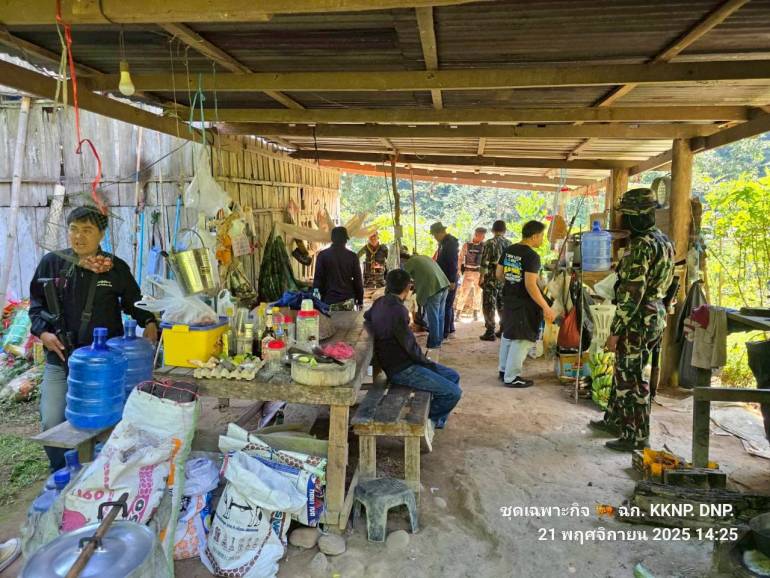 วันนี้ (22 พ.ย.2568) ​นายมงคล ไชยภักดี หัวหน้าอุทยานแห่งชาติแก่งกระจาน เปิดเผยว่า คณะพนักงานเจ้าหน้าที่ได้ร่วมกันตรวจยึดและแจ้งข้อกล่าวหาผู้กระทำผิด ประกอบด้วย 5 หน่วยงาน ได้แก่ เจ้าหน้าที่อุทยานแห่งชาติแก่งกระจาน, เจ้าหน้าที่ฝ่ายปกครอง นำโดยนายคณิน ทองก้อน ปลัดอำเภอแก่งกระจาน, เจ้าหน้าที่ชุดเฉพาะกิจทัพพระยาเสือ นำโดย ร.ท.ภัทรวรรธน์ คงมั่น ผู้บังคับหมวดลาดตระเวนที่ 1, เจ้าหน้าที่ตำรวจกองร้อยตำรวจตระเวนชายแดนที่ 144 นำโดย ด.ต.ยุทธศาสตร์ พุ่มผกา และเจ้าหน้าที่ชุดปฏิบัติการข่าวปราบปรามยาเสพติด (ชปส.) กก.ตชด.14 นำโดย ร.ต.อ.ธนภัทร เหลืองเอี่ยม