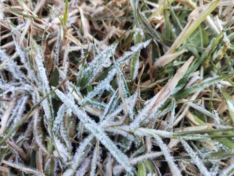 เช้าวันนี้ (24 พ.ย.2568) บริเวณกิ่วแม่ปาน อุทยานแห่งชาติดอยอินทนนท์ จ.เชียงใหม่ อุณหภูมิ 4 องศาเซลเซียส ทำให้เกิดปรากฏการณ์ เหมยขาบ หรือ น้ำค้างแข็ง