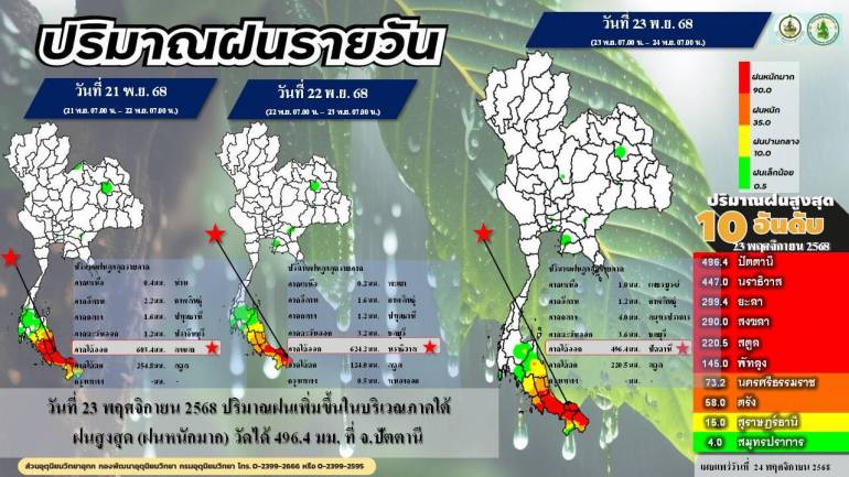 สรุปปริมาณฝนสะสมราย (21–23 พ.ย.68)
