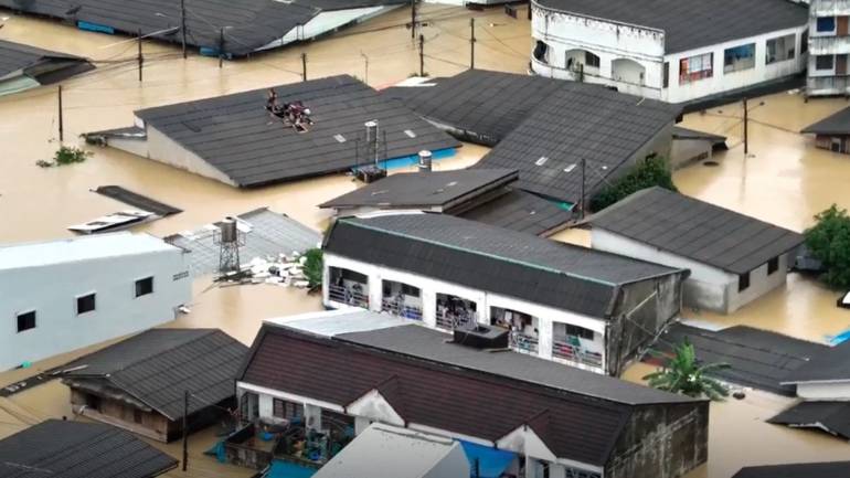 วันที่ 25 พ.ย.2568 ช่างภาพฝ่ายผลิตของไทยพีบีเอส บินโดรนสำรวจสถานการณ์น้ำท่วมหาดใหญ่ พบผู้ประสบภัยรอคอยขอความช่วยเหลือ อยู่บนหลังคาบ้าน โดยชาวบ้าน 5 คน ทั้งผู้ชาย และผู้หญิงสูงสูงอายุ ทุบหลังคาบ้านเพื่อปีนขึ้นมาอาศัยบนหนังคา หนีน้ำท่วมสูง บริเวณแยก 4 คลองหวะ อ.หาดใหญ่ จ.สงขลา และพยายามโบกผ้า และส่งเสียงร้องขอความช่วยเหลือ จนมีเจ้าหน้าที่ขับเรือผ่านมา