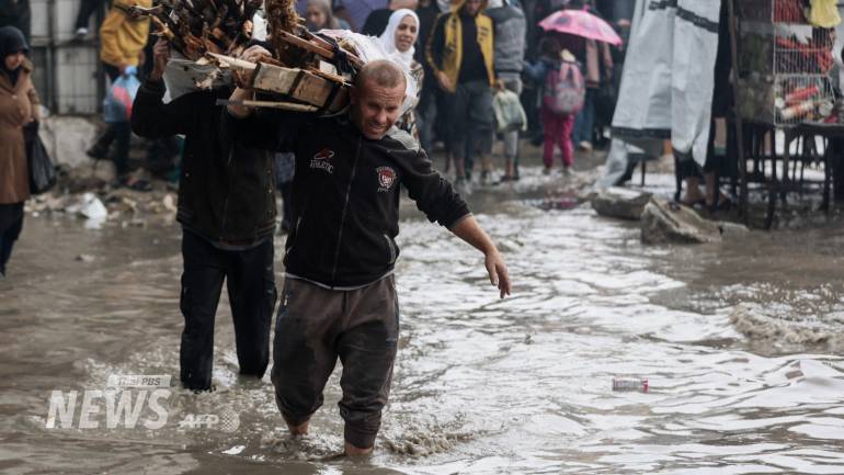 ซ้ำเติมวิกฤตมนุษยธรรม "กาซา" เจอฝนถล่มหนักเต็นท์พัง 2 หมื่นหลัง