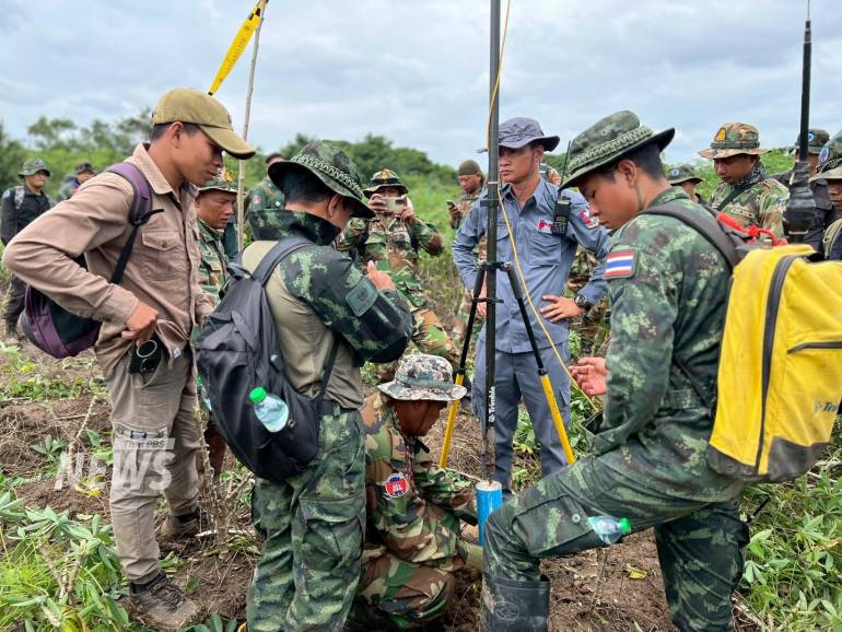 วันนี้ (26 พ.ย.2568) พล.ร.ต.ปารัช รัตนไชยพันธ์ โฆษกกองทัพเรือ กล่าวว่า การดำเนินการสำรวจและปักหมุดอ้างอิงชั่วคราวตามชายแดนไทย–กัมพูชา บริเวณหลักเขตที่ 52-59 ระยะทาง 8.3 กิโลเมตร ขณะนี้ได้เสร็จสิ้นเป็นที่เรียบร้อย โดยใช้เวลาในการปฏิบัติงาน รวมทั้งสิ้น 16 วัน คณะทำงานชุดสำรวจร่วมไทย–กัมพูชา ได้ปักหมุดอ้างอิงชั่วคราวครบจำนวน 166 หมุด ถือเป็นความคืบหน้าสำคัญในการจัดทำข้อมูลอ้างอิงร่วมกันระหว่างสองประเทศ