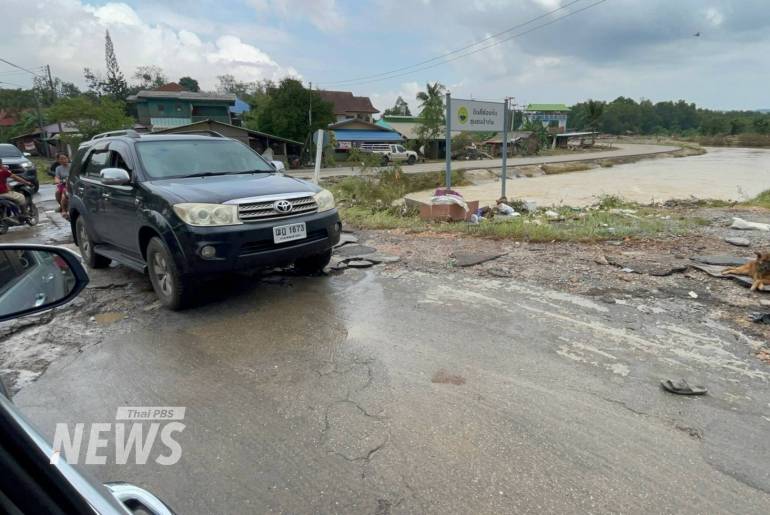 วันนี้ (27 พ.ย.2568) ทีมข่าวไทยพีบีเอส สำรวจเส้นทางถนนรอบนอกตัวเมืองมุ่งหน้าเข้า จ.สงขลา พบว่าน้ำท่วมขังที่หน้าสะพานติณสูลานนท์มีระดับลดลงเหลือประมาณ 5 เซนติเมตร รถจักรยานยนต์และรถยนต์ทั่วไปสามารถผ่านได้แล้ว