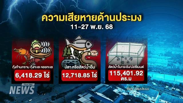 สถานการณ์อุทกภัยที่เกิดขึ้นในพื้นที่ 9 จังหวัดภาคใต้ สร้างความเสียหายอย่างมากในระยะเวลาประมาณ 2 สัปดาห์ โดยมีเกษตรกรผู้เพาะเลี้ยงสัตว์น้ำ ทั้งบ่อดิน บ่อซีเมนต์และกระชัง ได้รับความเดือดร้อนมากกว่า 13,000 ราย คิดเป็นมูลค่าความเสียหายไม่น้อยกว่า 285,000 ล้านบาท
