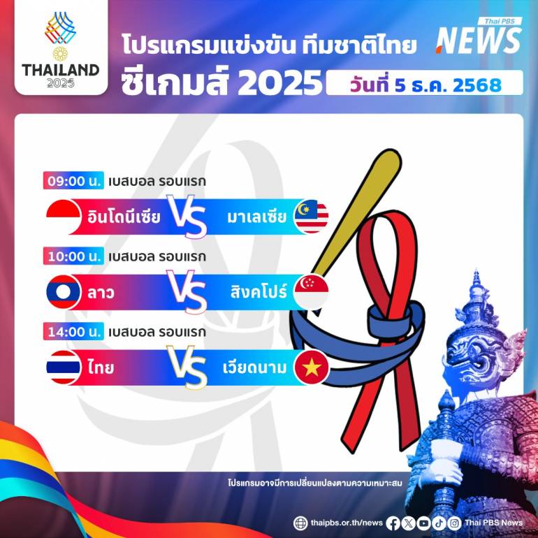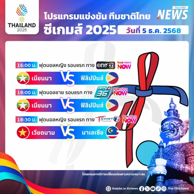 ตารางการแข่งขันกีฬาซีเกมส์ 2025 วันที่ 5 ธันวาคม 2568