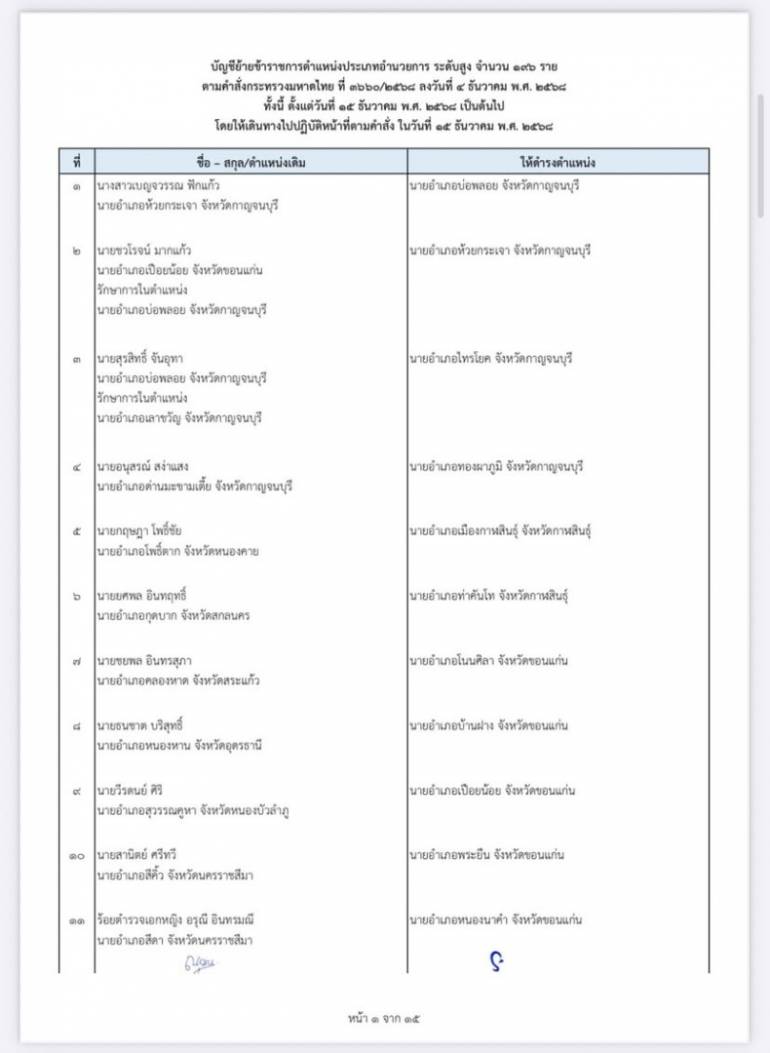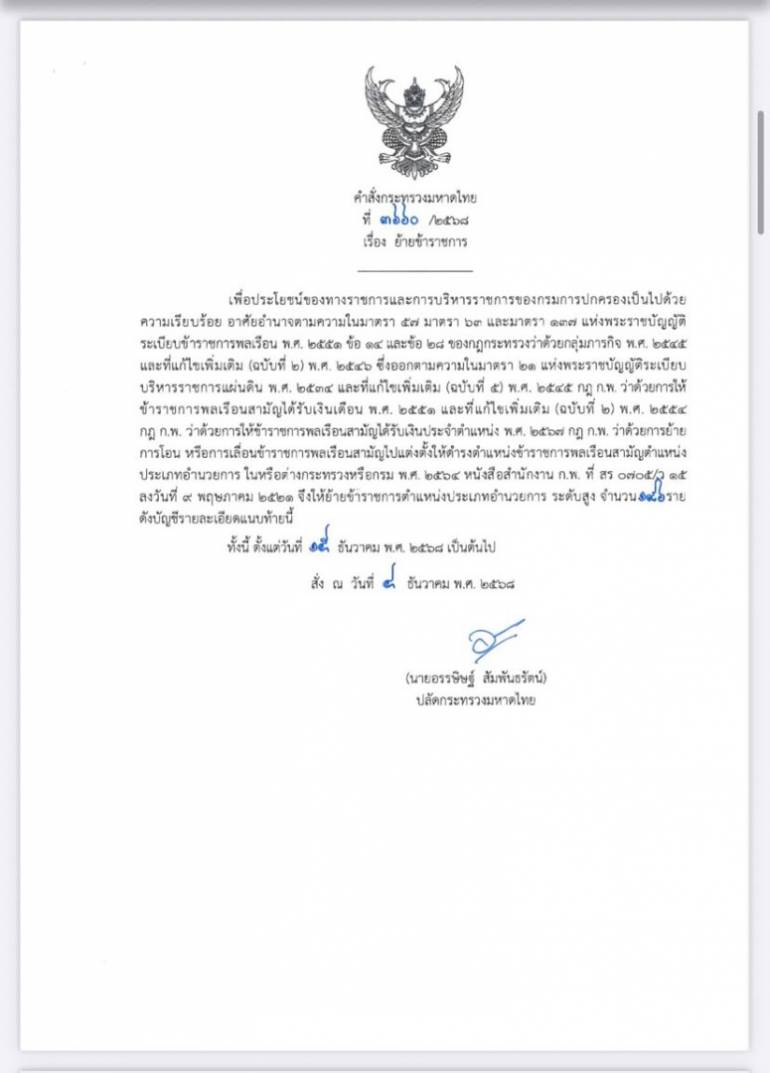 วันนี้ (5 ธ.ค.2568) กระทรวงมหาดไทย เผยแพร่คำสั่งย้ายข้าราชการ ที่ 3660/2568 ลงวันที่ 4ธ.ค.2568 ลงนามโดย นายอรรษิษฐ์ สัมพันธรัตน์ ปลัดกระทรวงมหาดไทย ย้ายข้าราชการตำแหน่งประเภทอำนวยการ ระดับสูง จำนวน 196 ราย มีผลตั้งแต่วันที่ 15 ธ.ค.2568 เป็นต้นไป