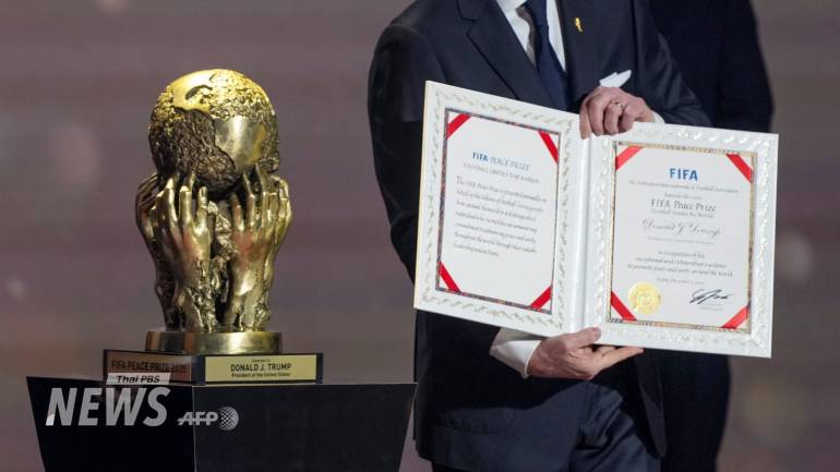 เมื่อวันที่ 5 ธ.ค.2568 CNN รายงาน พิธีมอบรางวัลจัดขึ้นที่ศูนย์ศิลปะการแสดง จอห์น เอฟ. เคนเนดี ในกรุงวอชิงตัน ดี.ซี. ซึ่ง ปธน.ทรัมป์ เพิ่งขึ้นเป็นประธานบอร์ดหลังปรับโครงสร้างผู้บริหารเก่า จีอานนี อินฟานติโน มอบถ้วยรางวัล เหรียญ และประกาศนียบัตรให้ทรัมป์ พร้อมขอบคุณที่ช่วยยุติสงครามและช่วยชีวิตคน