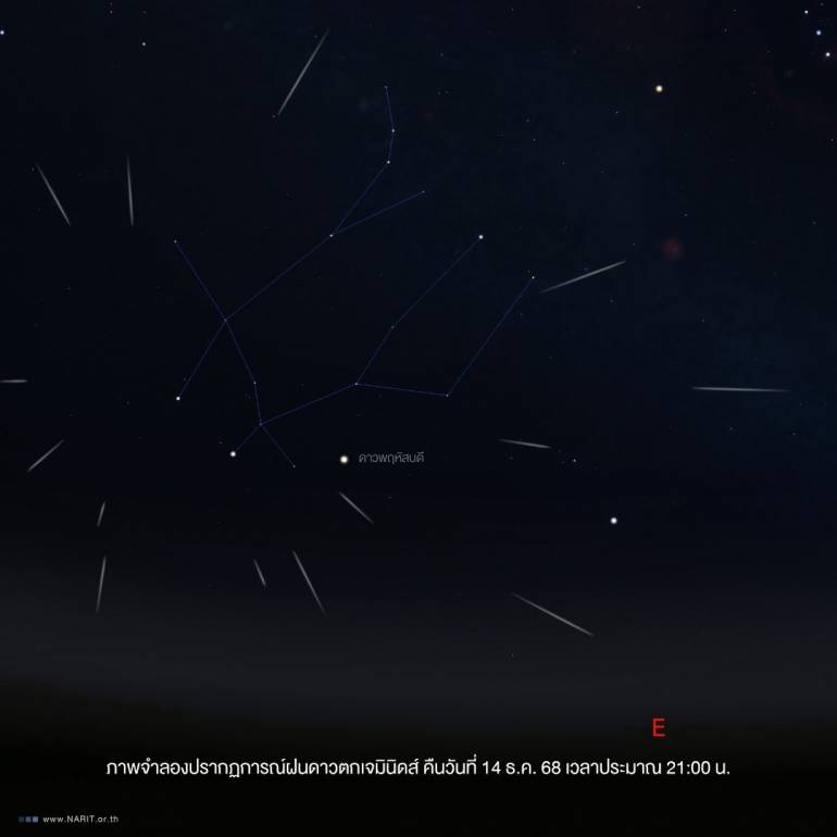 "ฝนดาวตกเจมินิดส์" หรือ ฝนดาวตกกลุ่มดาวคนคู่ จะเกิดในช่วงระหว่างวันที่ 4 - 20 ธันวาคม ของทุกปี มีศูนย์กลางการกระจายตัวบริเวณกลุ่มดาวคนคู่ ปีนี้นักดาราศาสตร์คาดการณ์ว่าจะมีอัตราการตกสูงสุดในช่วงหลังเที่ยงคืนวันที่ 14 ธันวาคม ถึงรุ่งเช้า 15 ธันวาคม 2568