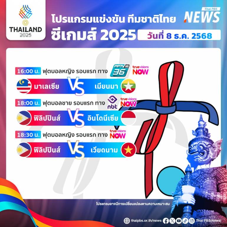 - เวลา 18.00 น. “ฟิลิปปินส์ พบ อินโดนีเซีย” ถ่ายทอดสดทาง NBT