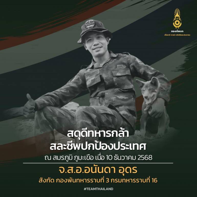 6. จ.ส.อ.อนันดา อุดร สังกัด กองพันทหารราบที่ 3 กรมทหารราบที่ 16 เสียชีวิตในสมรภูมิภูมะเขือ (10 ธ.ค.2568)