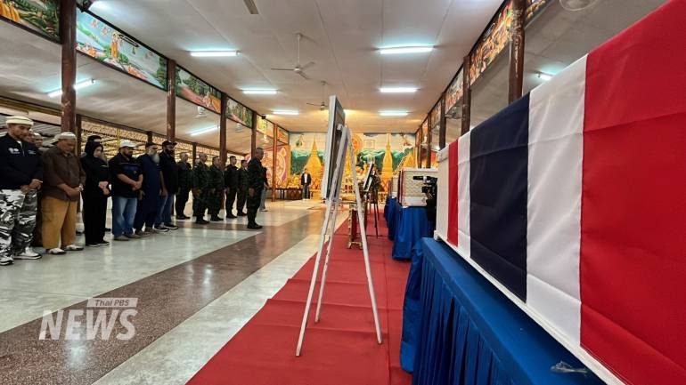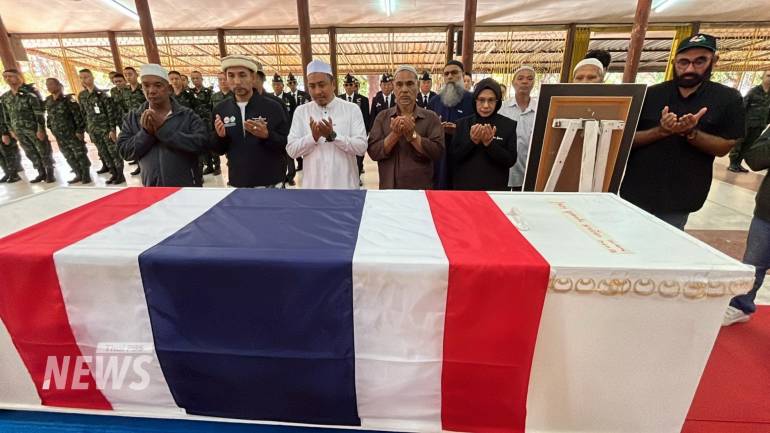 วันนี้ (14 ธ.ค.2568) ที่พุทธสถานมณฑลทหารบกที่ 22 ค่ายสรรพสิทธิประสงค์ อ.วารินชำราบ จ.อุบลราชธานี เจ้าหน้าที่ได้นิมนต์พระสงฆ์ มาทำพิธีบำเพ็ญกุศลอุทิศ แก่ทหารผู้เสียสละทั้ง 3 นาย พร้อมทั้งผู้นำศาสนาอิสลาม มาทำพิธีให้กับทหารผู้เสียชีวิตที่นับถือศาสนาอิสลาม