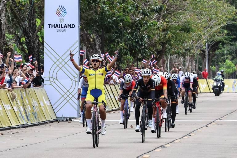 จักรยานประเภทถนนวันเเรก ชิง 2 เหรียญทอง ไฮไลต์อยู่ที่ไครทีเรียมหญิง ทีมไทยส่ง ร.อ.หญิง จุฑาธิป มณีพันธุ์ , ส.อ.หญิง ศุภักษร นันตะนะ และ ส.ท.หญิง ชนิภรณ์ บัตริยะ ลงแข่งขัน ผลปรากฏว่า "บีซ จุฑาธิป" ดีกรีแชมป์เก่า 2 สมัย เร่งสปรินต์ในรอบสุดท้ายเข้าเส้นชัยเป็นคนแรกคว้าเหรียญทองไปครองเป็นสมัยที่ 3 ติดต่อกัน และเป็นเหรียญทองที่ 5 ของทีมสองล้อไทยในซีเกมส์หนนี้ โดย จุฑาธิป ยังมีลุ้นคว้าทองอีก 2 รายการ ได้เเก่ โรดเรซบุคคลหญิง เเละ ประเภทลู่ในสแครตช์