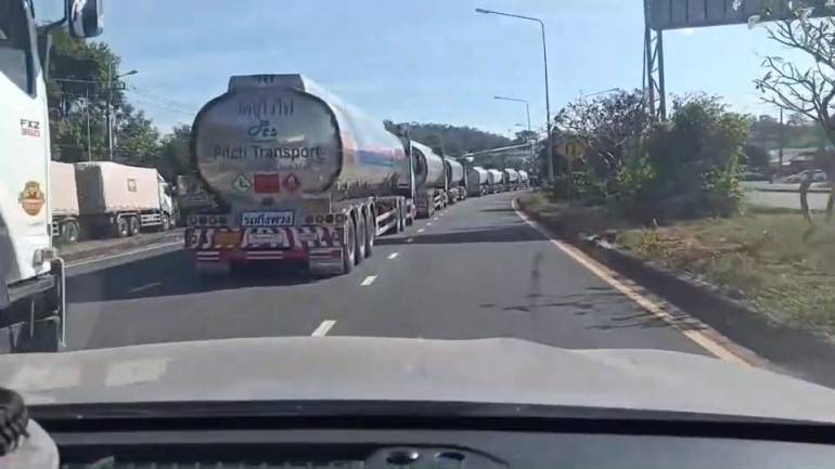 1.ขบวนรถขนส่งน้ำมันจำนวนมาก รอเข้าด่านช่องเม็ก จ.อุบลราชธานี ผ่านเข้า สปป.ลาว เป็นภาพจากคลิปที่เพจ “Thai Burma railway ทางรถไฟสายมรณะ” โพสต์ไว้ชัดเจน และระบุว่า ถ่ายไว้วันนี้ (14 ธ.ค.2568) (ภาพยังสว่างอยู่) พร้อมระบุว่า ขบวนรถน้ำมันที่รอผ่านด่านช่องเม็ก สปป.ลาว จำนวน 80 คัน ถ้าเป็น Semi trailer จะสามารถบรรทุกน้ำมันได้คันละ 50,000 ลิตร หรือรวมแล้วประมาณกว่า 4 ล้านลิตร