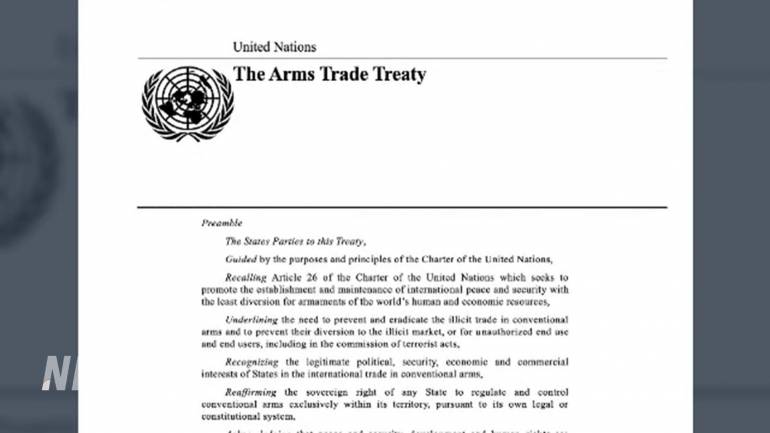 ในทางกฎหมายระหว่างประเทศ ที่มักจะถูกหยิบขึ้นมาพูดถึง นั่นคือ สนธิสัญญาว่า ด้วยการค้าอาวุธ ปี 2013 ซึ่งปัจจุบัน มากกว่า 110 ประเทศทั่วโลก รับรองสนธิสัญญาฉบับนี้ หลังประชาคมระหว่างประเทศใช้เวลานานถึง 7 ปี กว่าที่จะเห็นชอบร่วมกันได้บนเวทีสหประชาชาติ