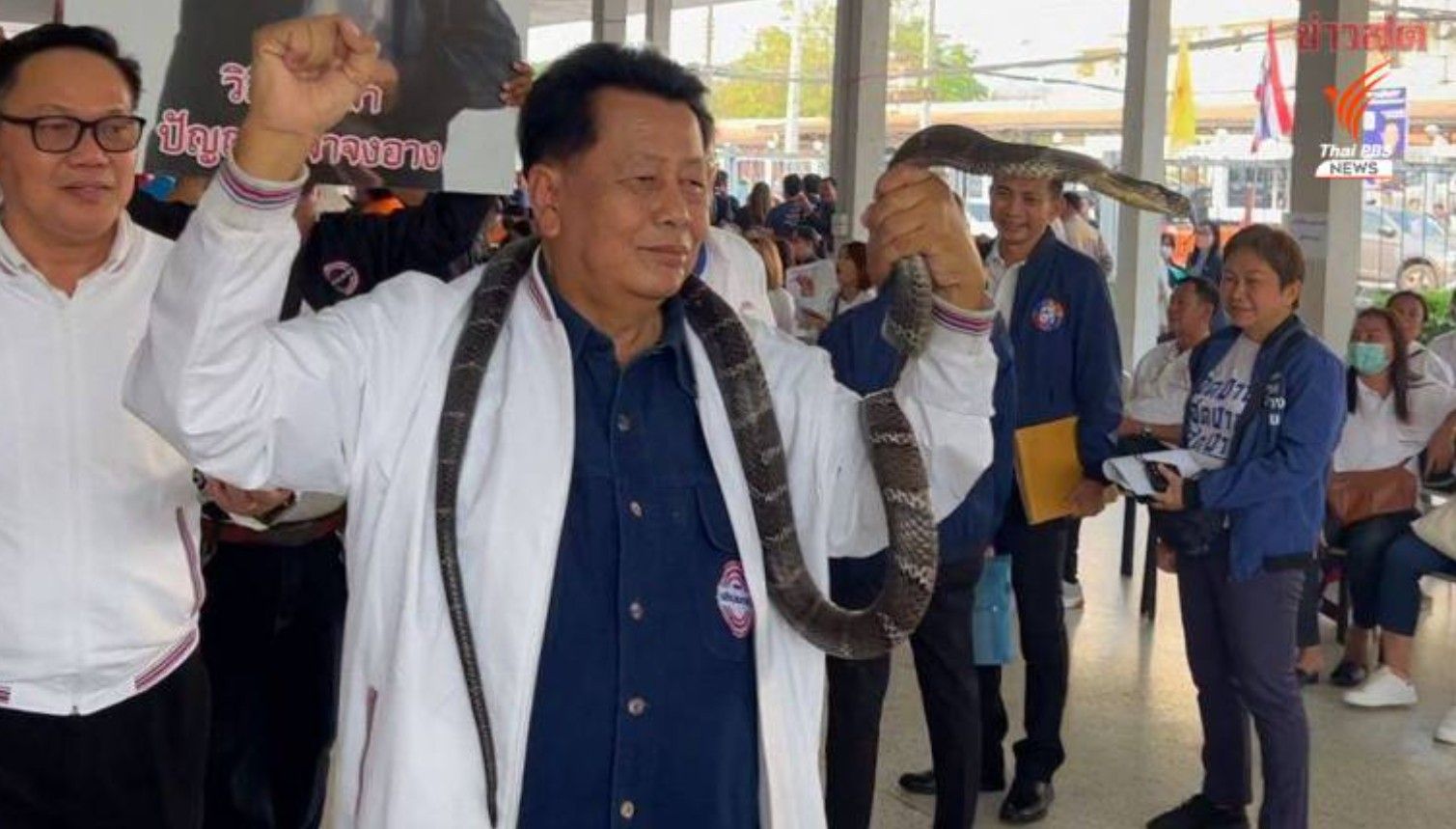 หรือผู้สมัครบางคนขี่ม้ามาอย่างห้าวหาญ แต่ที่ทำเอาแตกตื่นที่สุด คือ ผู้สมัคร ส.ส.ขอนแก่นพรรคพลังประชารัฐ พก “งูจงอาง” มาร่วมสมัครด้วย งานนี้ กกต. ต้องออกโรงห้ามไม่ให้นำเข้ามายังสถานที่รับสมัครเด็ดขาด