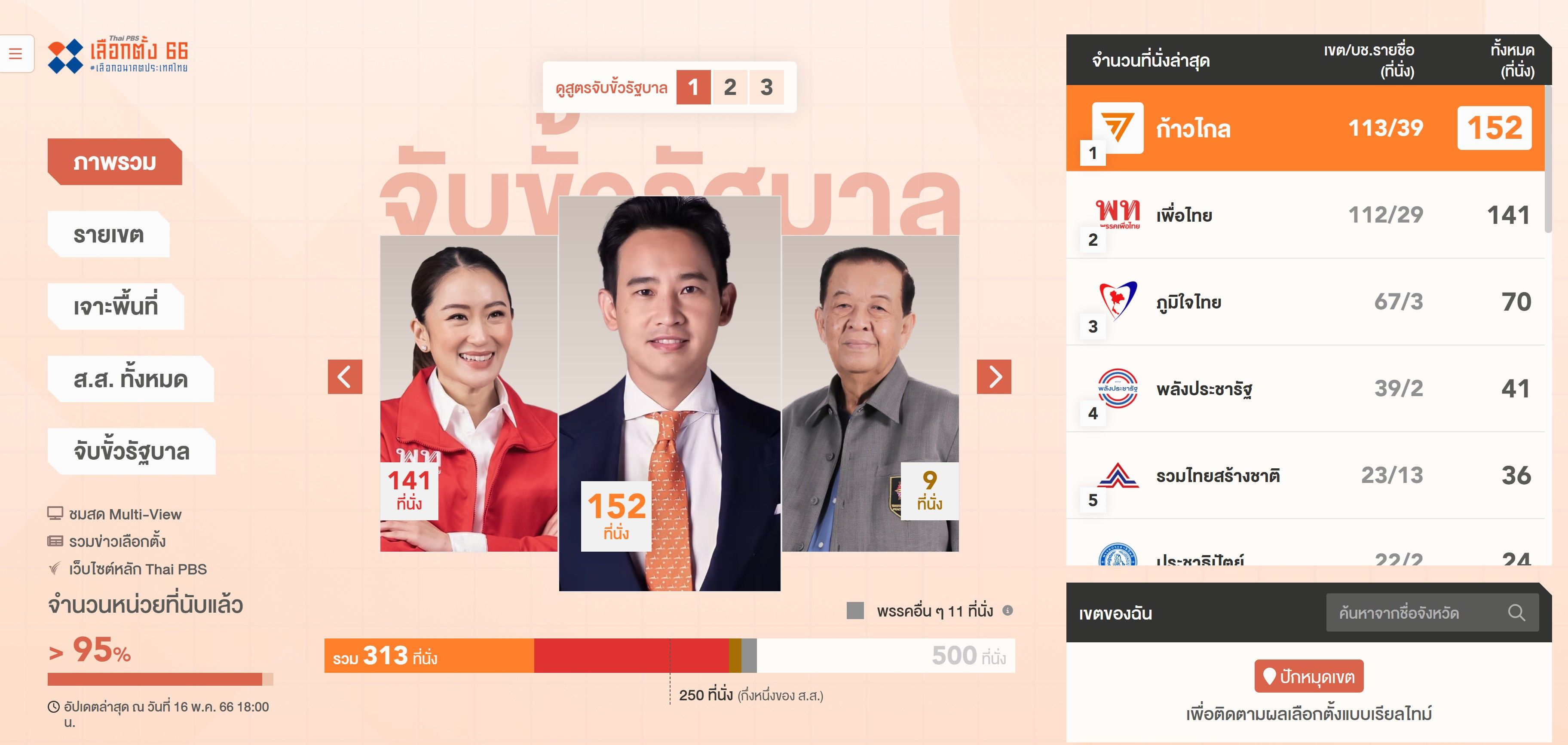 เลือกตั้ง 66 ความคึกคักของผลการเลือกตั้งแบบนาทีต่อนาที