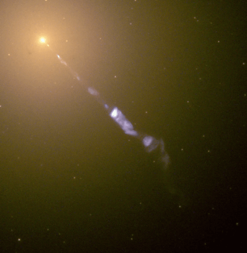 *ปี ค.ศ. 1918 นักดาราศาสตร์อเมริกัน เฮเบอร์ เคอร์ติส (Heber Curtis : ค.ศ. 1872-1942) ค้นพบว่า มีลำอนุภาคพลังงานสูงพุ่งออกมาจากใจกลางของเนบิวลา87 โดยในปี ค.ศ. 1918 นั้น ยังไม่ทราบกันว่า เอ็ม87 เป็นกาแล็กซี เพราะยังเข้าใจกันว่า จักรวาลมีเพียงกาแล็กซีเดียว คือ กาแล็กซีทางช้างเผือกของเรา