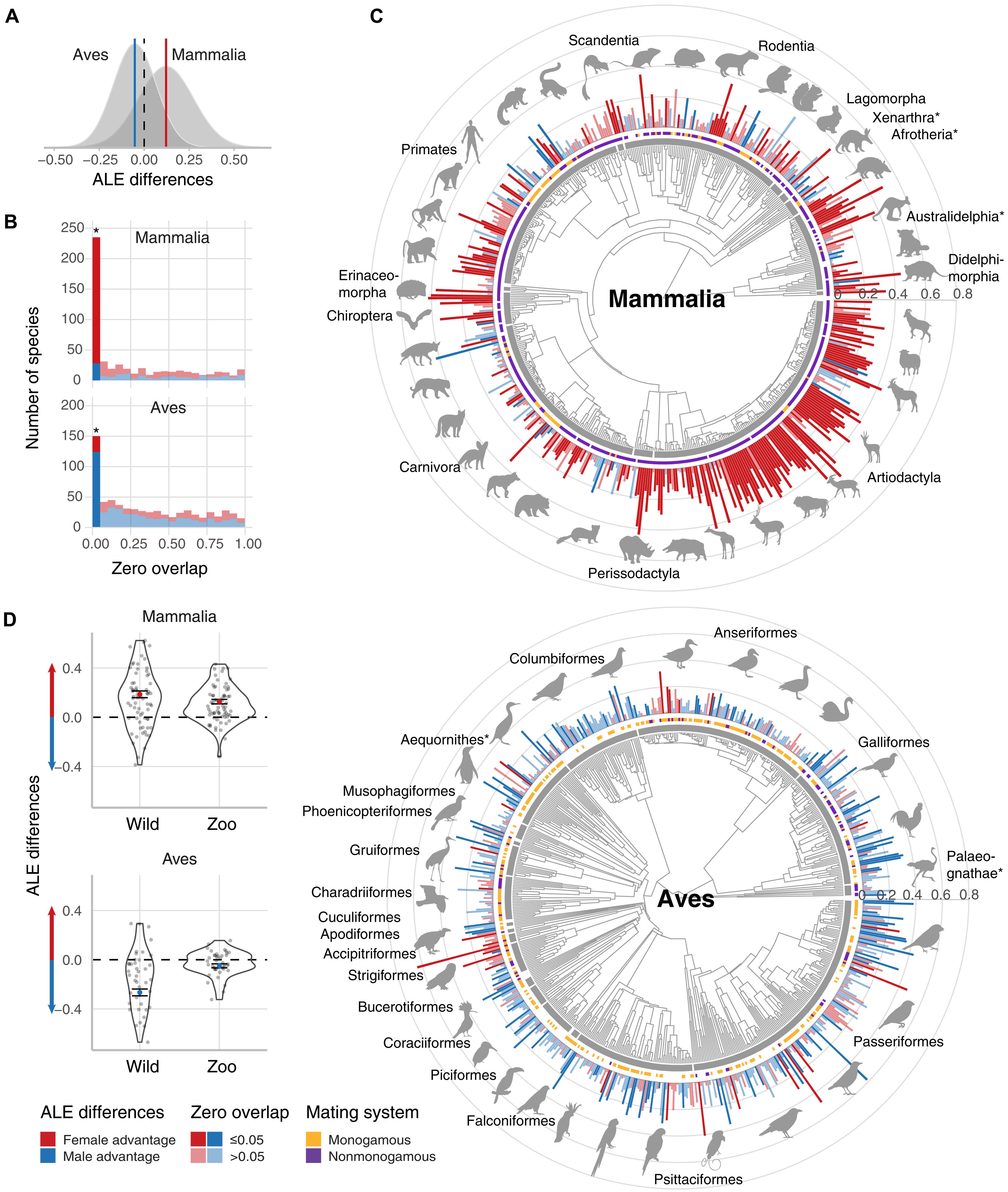ผลจากการศึกษาวิจัย พบว่า ความแตกต่างของอายุขัยหรือการมีอายุยืนยาวระหว่างตัวผู้กับตัวเมีย “ลดลง” แต่ก็ไม่หายไป ทั้งกับสัตว์ตัวอย่างการทดลองประเภทเลี้ยงลูกด้วยนมและนก นั่นคือ สำหรับสัตว์เลี้ยงลูกด้วยนม ตัวเมียมีอายุยืนกว่าตัวผู้ ส่วนสัตว์จำพวกนก ตัวผู้เป็นฝ่ายมีอายุยืนยาวกว่าตัวเมีย