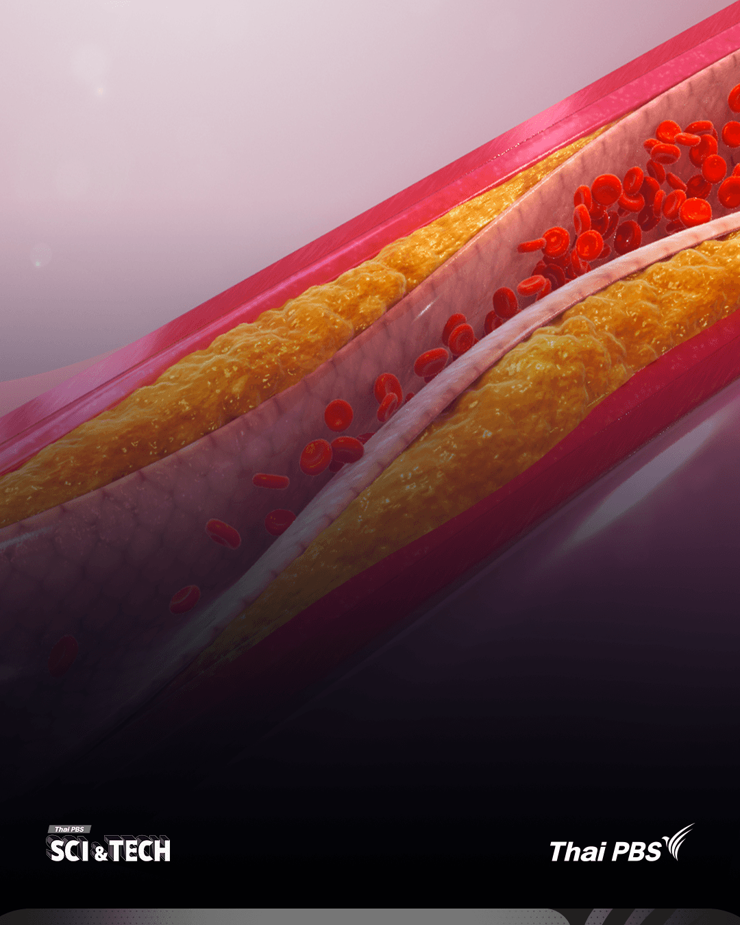 ระบบภูมิคุ้มกันของร่างกายจึงส่งเม็ดเลือดขาวมาช่วยกินไขมันที่เกาะอยู่นั้น แต่เมื่อมันกินมากเกินไป เซลล์เหล่านี้จะบวมจนเต็มไปด้วยไขมัน กลายเป็น Foam Cell ซึ่งเป็นจุดเริ่มต้นของคราบไขมันเล็ก ๆ ที่เรียกว่า Fatty Streak หรือคราบเหลือง ๆ ที่เกาะตามผนังหลอดเลือด