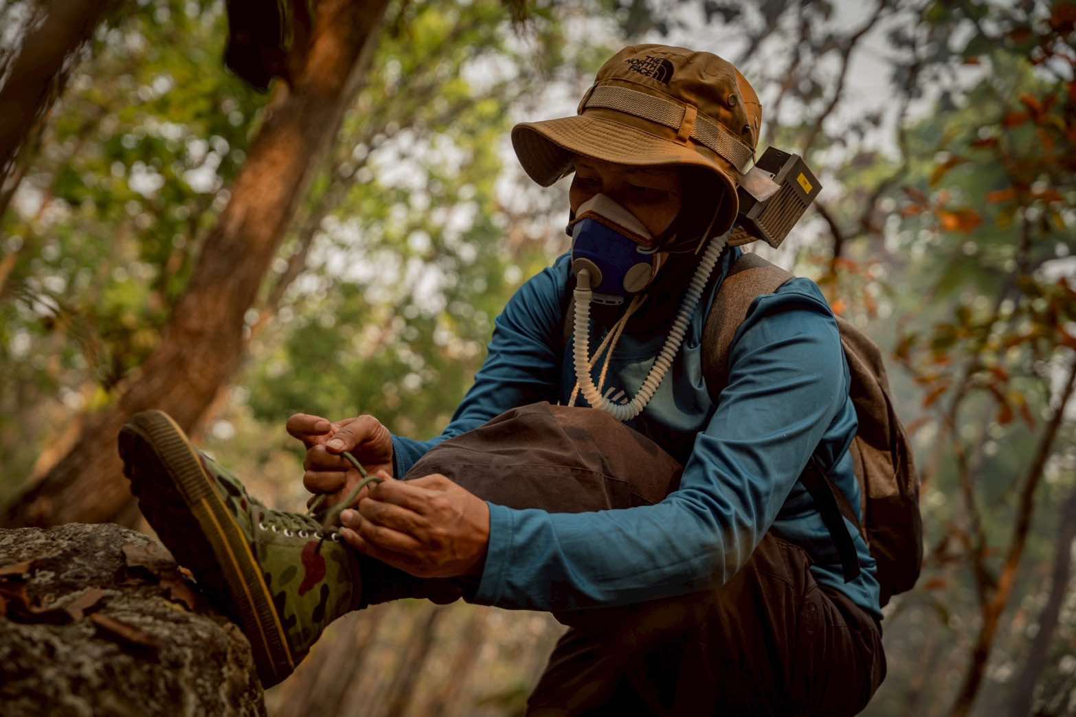“ดับไฟมันก็เหนื่อย แต่เราเหนื่อยแค่ไม่กี่คน สามารถช่วยให้หลายคนได้มีลมหายใจที่ดี” มานพ มาเยอะ อาสาสมัครดับไฟป่า ประจำหน้าที่ หัวหน้าทีมดับไฟ