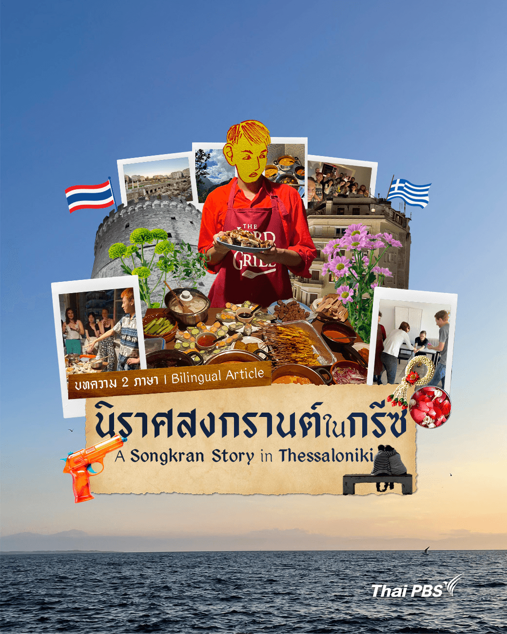 เวลาคิดถึงบ้าน คนไทยในต่างแดนคงนัดรวมตัวสังสรรค์กันในช่วงเทศกาลต่าง ๆ แต่บางเมือง ก็ไม่ได้มีไทยทาวน์ หรือหาวัตถุดิบไทย ๆ ไม่ได้ง่าย ๆ ‘เทสซาโลนิกิ (Thessaloniki)’ เมืองใหญ่อันดับที่ 2 ของกรีซ ก็เป็นเมืองหนึ่งที่ไม่มีชุมชนคนไทย และไม่คุ้นเคยกับวัฒนธรรมไทยเสียเท่าไหร่ อย่างไรก็ดี 2 ปีก่อน ซอฟต์พาวเวอร์ไทยอย่าง ‘สงกรานต์’ ก็ไปถึงนครแห่งนี้ในหมู่นักศึกษาและกลุ่มเพื่อนนานาชาติ สะท้อนจิตวิญญาณของเทสซาโลนิกิซึ่งพร้อมต้อนรับทุกสิ่งและทุกคนด้วยใจเปิดกว้าง พีรชัย พสุทันท์ Thai PBS Digital Content Creator และอดีตนักเรียนไทยที่เทสซาโลนิกิ ชวนย้อนความทรงจำอีกครั้งถึงค่ำคืนสงกรานต์ในเมืองแห่งนี้
