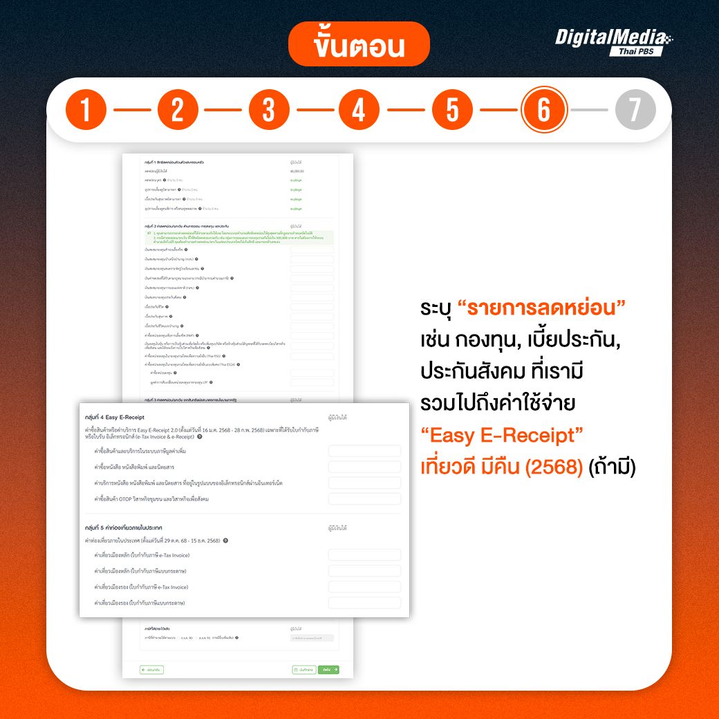 6. กรอกข้อมูลรายการลดหย่อนของตนเองที่มีทั้งหมด