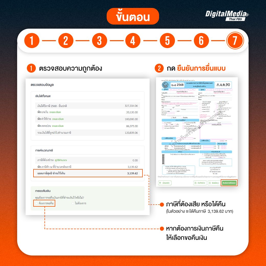7. ตรวจสอบข้อมูลตามที่ระบบคำนวณภาษีให้อัตโนมัติ
