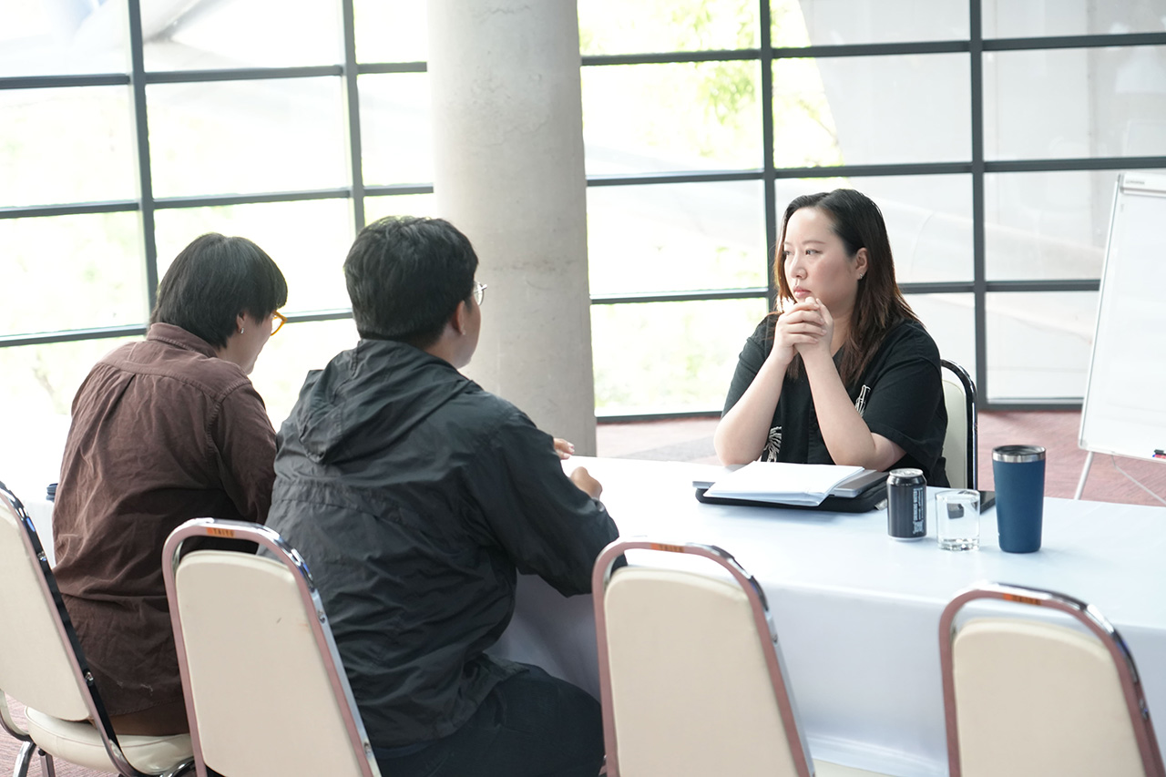 อีกช่วงสำคัญของวันคือการพบ Mentor ซึ่งถือเป็นหัวใจของการพัฒนาไอเดียสารคดี ทั้ง 10 ทีมได้รับโอกาสปรึกษาอย่างใกล้ชิดกับผู้เชี่ยวชาญที่ให้คำแนะนำเชิงลึก ตั้งแต่การปรับโครงสร้างเรื่อง การหามุมมองใหม่ ไปจนถึงเทคนิคการเล่าเรื่องเพื่อเข้าถึงผู้ชม ก่อนนำ Proposal และ Storyboard เสนอแก่คณะกรรมการ บรรยากาศเต็มไปด้วยความจริงจังแต่ไม่ขาดความสนุกและยังเป็นกันเอง โดยการแลกเปลี่ยนครั้งนี้ไม่เพียงสร้างความมั่นใจ แต่ยังยกระดับไอเดียของน้อง ๆ ทั้ง 10 ทีมให้กลายเป็นโครงเรื่องสารคดีที่ชัดเจนและเป็นรูปธรรมมากขึ้น