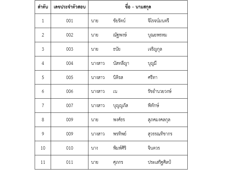 ผู้มีสิทธิเข้ารับการสอบสัมภาษณ์ ตำแหน่ง เจ้าหน้าที่รีไรท์เตอร์