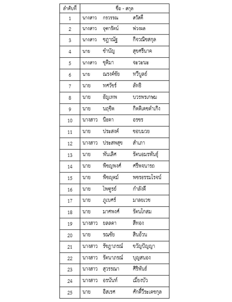 ผู้มีสิทธิสอบข้อเขียน ตำแหน่ง เจ้าหน้าที่ทรัพยากรมนุษย์อาวุโส/ เจ้าหน้าที่ทรัพยากรมนุษย์ชำนาญการ