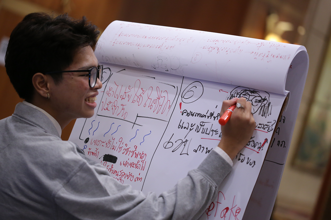 จากนั้นได้ร่วมถอดบทเรียนจาก 2 ตัวแทนเครือข่ายงานด้านสื่อระดับเอเชียในเซสชัน “Asia Fact-Check Strategy” โดย Mr. John Marwin Elao – Social Media Producer, Philstar Global Corp., Philippines และ Mr. Muhammad Haziq Zahid – English News Editor, Radio Televisyen Malaysia (RTM) Malaysia ก่อนจบวันด้วยคลาส “Newsroom Simulation จำลองห้องข่าว: Fact-Check Warroom” ที่ให้ผู้เข้าร่วมอบรมได้แบ่งกลุ่ม รับโจทย์จากทีมวิทยากร เพื่อฝึกเทคนิคตรวจสอบข้อเท็จจริง Fact-Checking ผ่านการจำลองสถานการณ์จริง