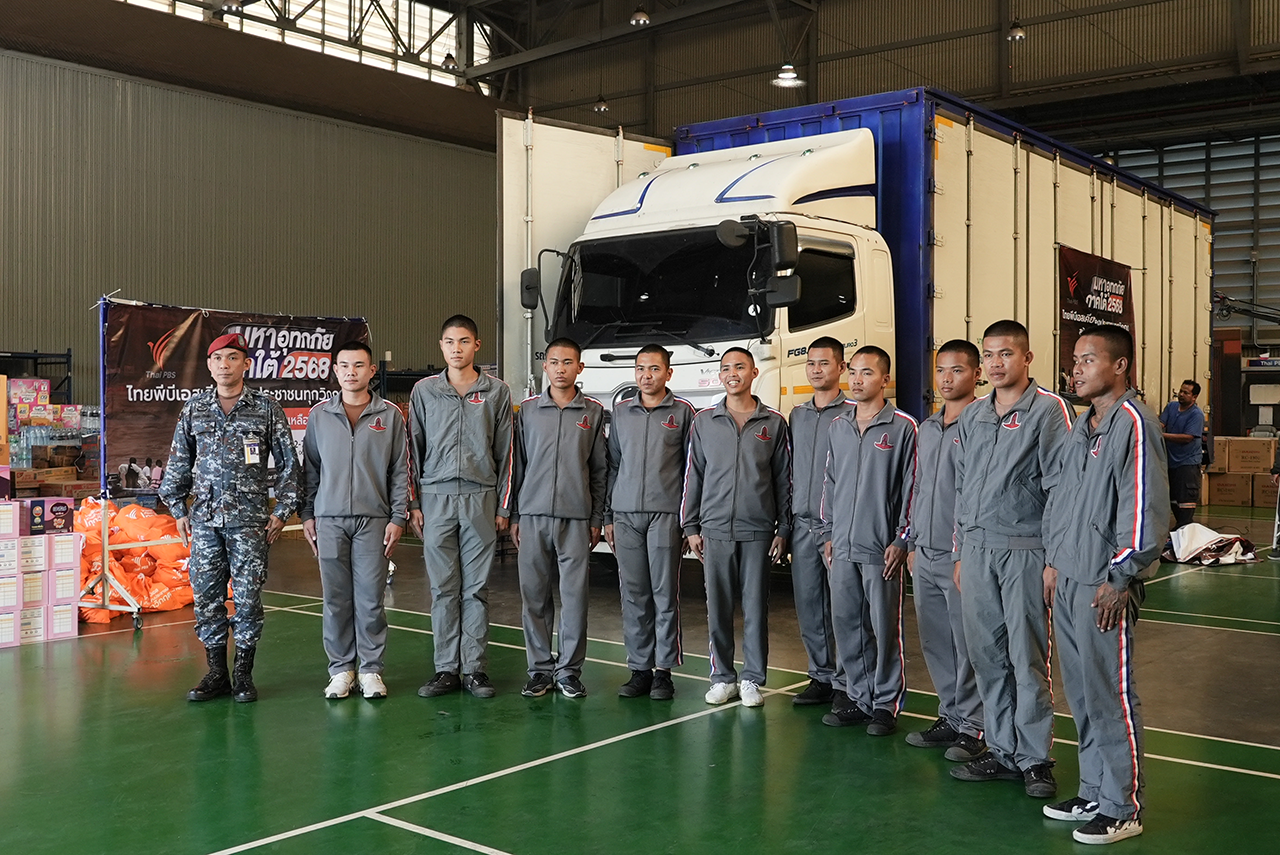 นอกจากนี้ได้รับการสนับสนุนบริการขนส่งจาก ลาลามูฟ ประเทศไทย สนับสนุนรถขนส่งสินค้าไปยังท่าอากาศยานดอนเมือง เพื่อส่งต่อให้แก่สายการบินแอร์เอเชีย ขนส่งในเที่ยวบิน AirAsia FD3114 นำส่งสิ่งของบริจาคจากกรุงเทพฯ สู่หาดใหญ่ในวันนี้ (3 ธ.ค.) น้ำหนักรวมกว่า 2 ตัน อาทิ ข้าวสาร 6 กระสอบ น้ำหนักรวม 240 กก. ซอสปรุงรส ยา นมถั่วเหลือง ปลากระป๋อง อาหารเสริมชนิดผงสำหรับเด็กอายุ 6 เดือน–3 ปี (Go Up) เครื่องฉีดน้ำแรงดันสูง หม้อหุงข้าว ทั้งหมดถูกส่งต่อยังจุดกระจายความช่วยเหลือในพื้นที่ เพื่อเร่งนำไปถวายวัด ศูนย์พักพิง และบ้านเรือนที่ยังคงถูกตัดขาดจากเส้นทางหลัก รวมถึงได้รับความอนุเคราะห์สนับสนุนรถบรรทุก 10 ล้อ จำนวน 3 คัน จากอาจารย์วิจักษณ์ สองจันทร์ ประธานมูลนิธิพุทธภูมิธรรม และ นางสาวสาธิมา ลาชโรจน์ ผู้อำนวยการศูนย์อำนวยการมูลนิธิพุทธภูมิธรรม ในการลำเลียงขนส่งสิ่งของบริจาคและถุงยังชีพลงพื้นที่หาดใหญ่ พร้อมทั้งให้กำลังใจทีมงานและจิตอาสาไทยพีบีเอส ” โดยมีนางสาวปภาภรณ์ เฉลิมวนิชย์ ผู้อำนวยการศูนย์สื่อสารและส่งเสริมการตลาดเพื่อสาธารณะ ไทยพีบีเอส รับมอบ
