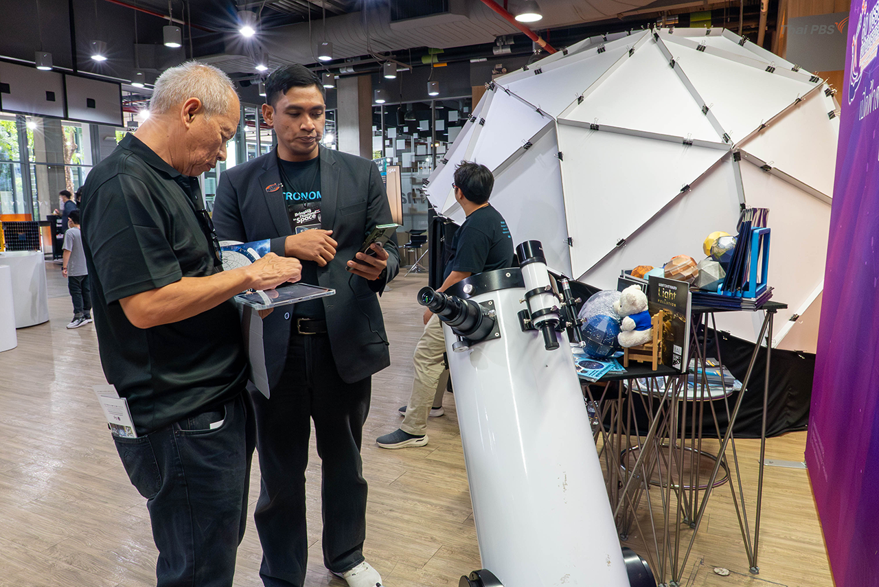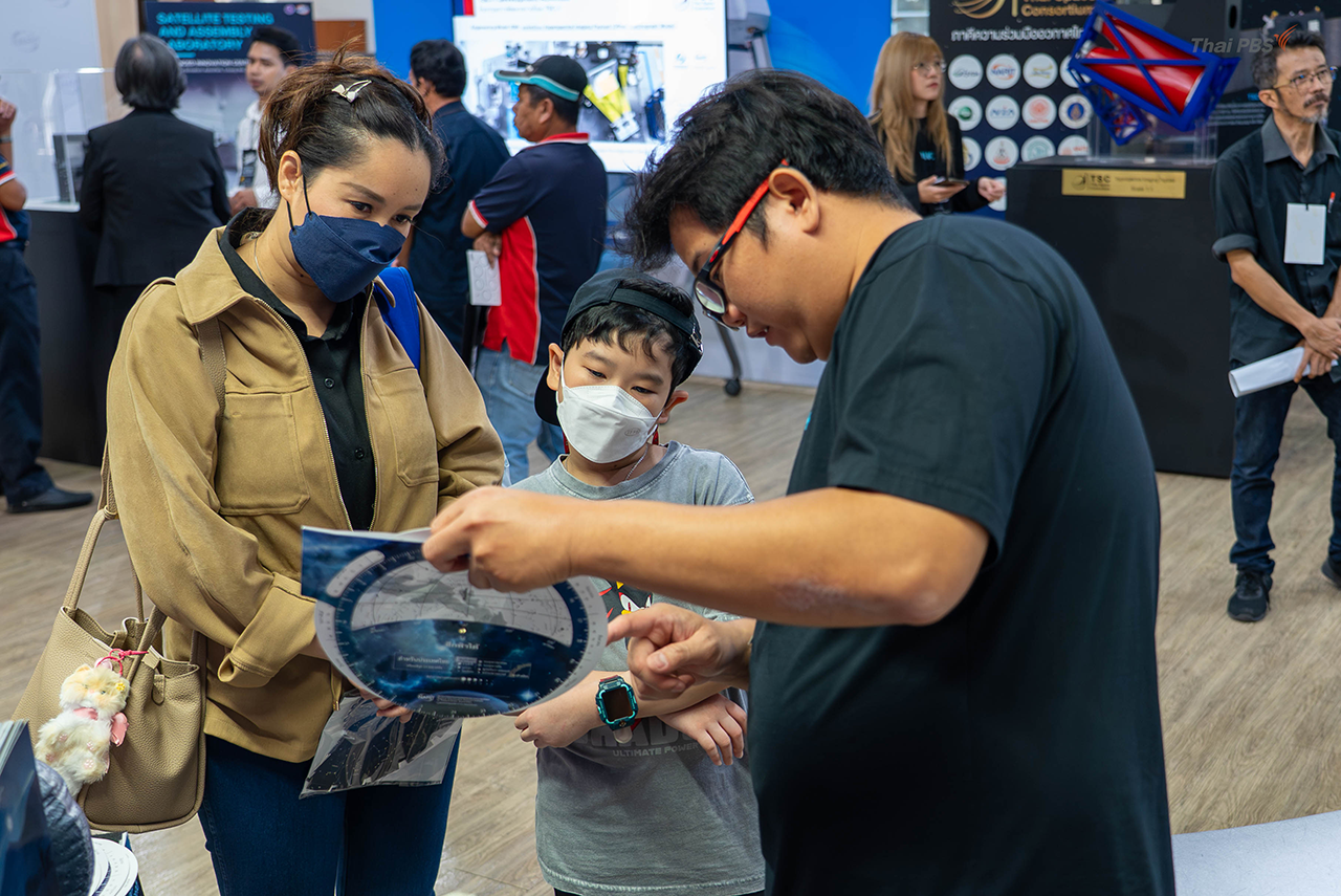 นอกจากเสวนาและกิจกรรมบนเวที ภายในงานยังมีนิทรรศการด้านอวกาศจากหลายหน่วยงานชั้นนำ อาทิ NARIT กับโดมท้องฟ้าจำลองและอุปกรณ์ทดลองทางวิทยาศาสตร์, GISTDA นำเสนอเทคโนโลยีดาวเทียมและภารกิจอวกาศของไทย, สวทช. (NSTDA) โชว์โครงการความร่วมมือด้านอวกาศร่วมกับ JAXA ของญี่ปุ่น พร้อมด้วยบูธกิจกรรมจาก Thai PBS World สำนักสื่อดิจิทัล และศูนย์สื่อสารและส่งเสริมการตลาดเพื่อสาธารณะ ที่ร่วมจัดกิจกรรมสื่อสารองค์ความรู้ผ่านสื่อหลากหลายรูปแบบ