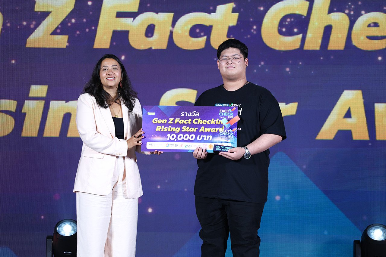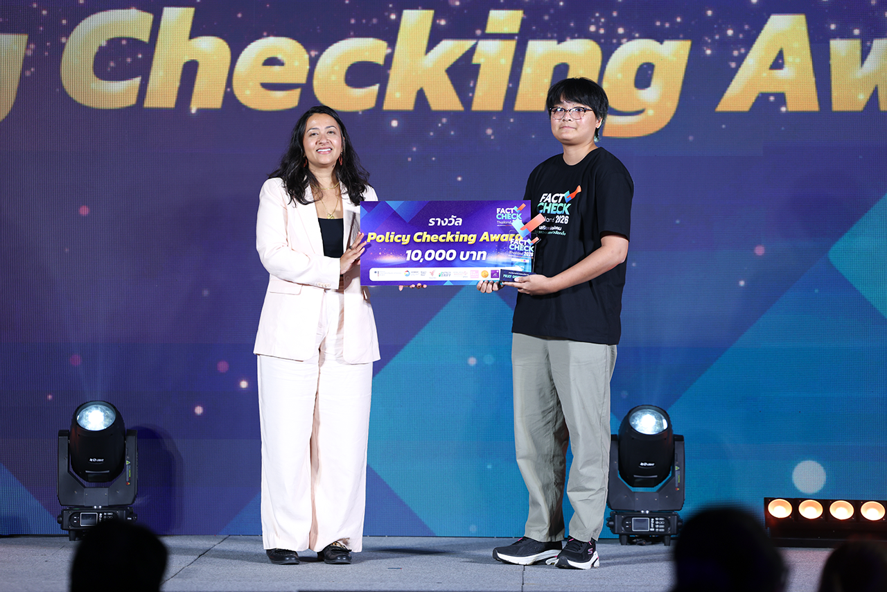 รางวัลไม่ใช่ปลายทาง แต่คือหลักฐานว่า “ทักษะแห่งความจริง” กำลังถูกขยายจากนักข่าวท้องถิ่น นักข่าวอิสระ นักศึกษา คอนเทนต์ครีเอเตอร์ ไปถึงเยาวชน Gen Z เพื่อรับมือข่าวลวง–ข้อมูลบิดเบือนในศึกเลือกตั้ง 2569