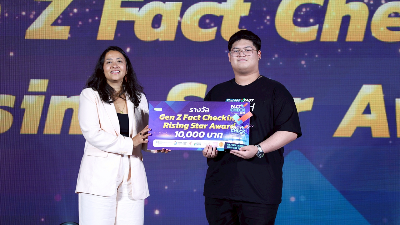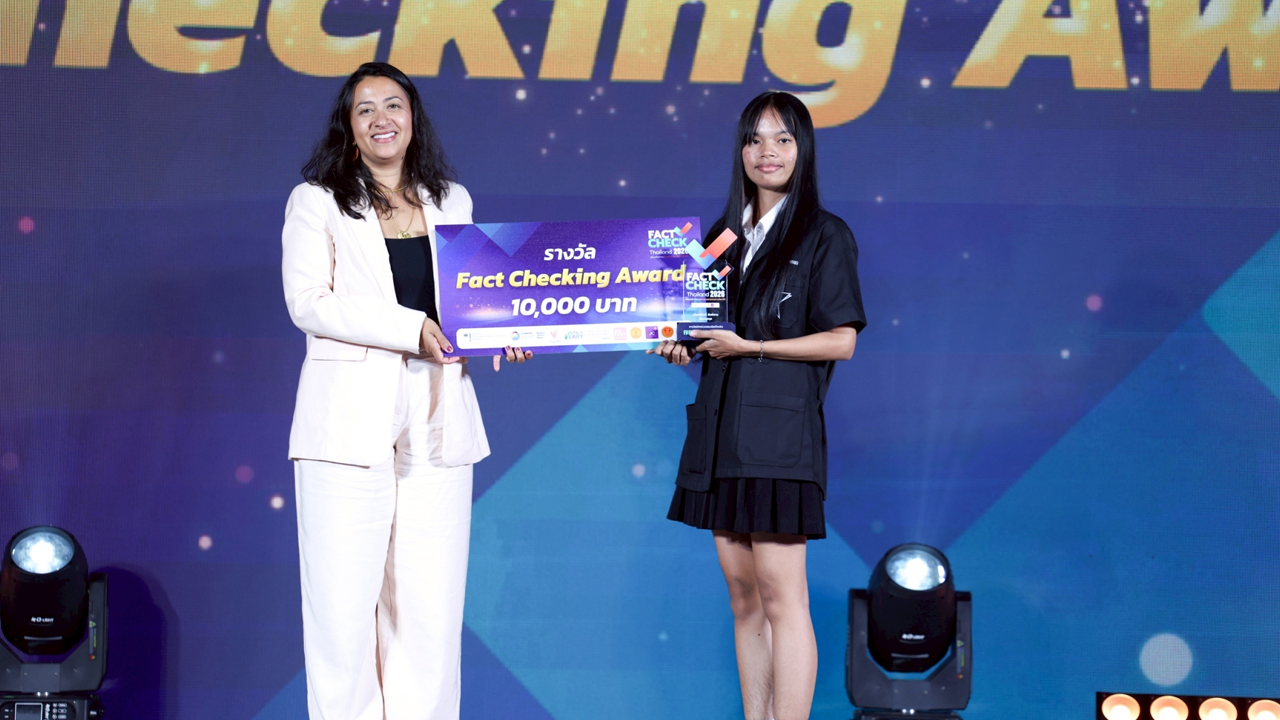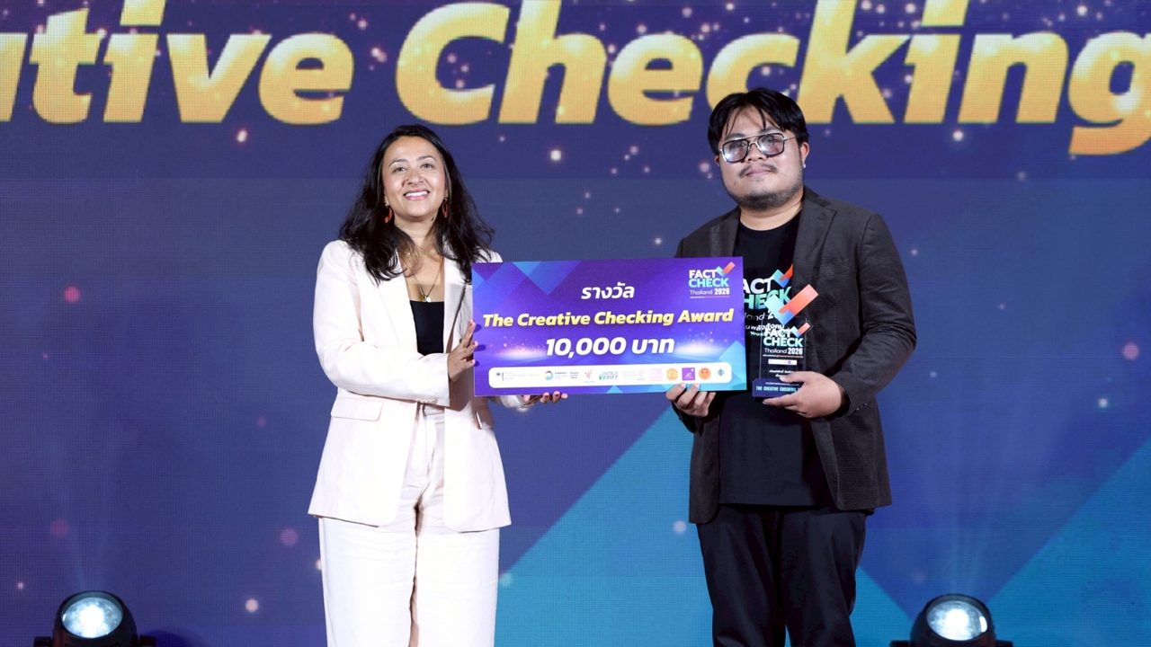 ประกาศผลเป็นที่เรียบร้อยแล้ว สำหรับรางวัล Fact-Check Thailand Award 2026 เวทีเชิดชูผลงานตรวจสอบข้อเท็จจริงที่เปี่ยมด้วยคุณภาพ รวมทั้งสิ้น 7 รางวัล จากผลงานกว่า 50 ชิ้น ที่ส่งเข้าประกวด จากผู้ผ่านการอบรม Fact-Check Thailand 2026 โครงการอบรมเชิงปฏิบัติการเพื่อพัฒนานักตรวจสอบข้อเท็จจริง และสร้างระบบนิเวศข่าวสารที่น่าเชื่อถือให้กับสังคมไทย ซึ่งจัดขึ้นภายใต้ความร่วมมือของ 4 องค์กรหลักที่เห็นความสำคัญของข้อมูลที่ถูกต้องในสังคมประชาธิปไตย ได้แก่ สถานเอกอัครราชทูตเยอรมนีประจำประเทศไทย มหาวิทยาลัยธรรมศาสตร์ ไทยพีบีเอส และ Cofact Thailand เมื่อวันที่ 18 ธ.ค. 68 ในงาน “Talk for Truth และพิธีประกาศผล Fact-Check Thailand Award 2026” โดย Ms. Sweta Madhuri Kannan First Secretary, Press and Cultural Affairs, German Embassy Bangkok เป็นประธานมอบโล่รางวัล ณ คอนเวนชันฮอลล์ ชั้น 2 อาคาร D ไทยพีบีเอส