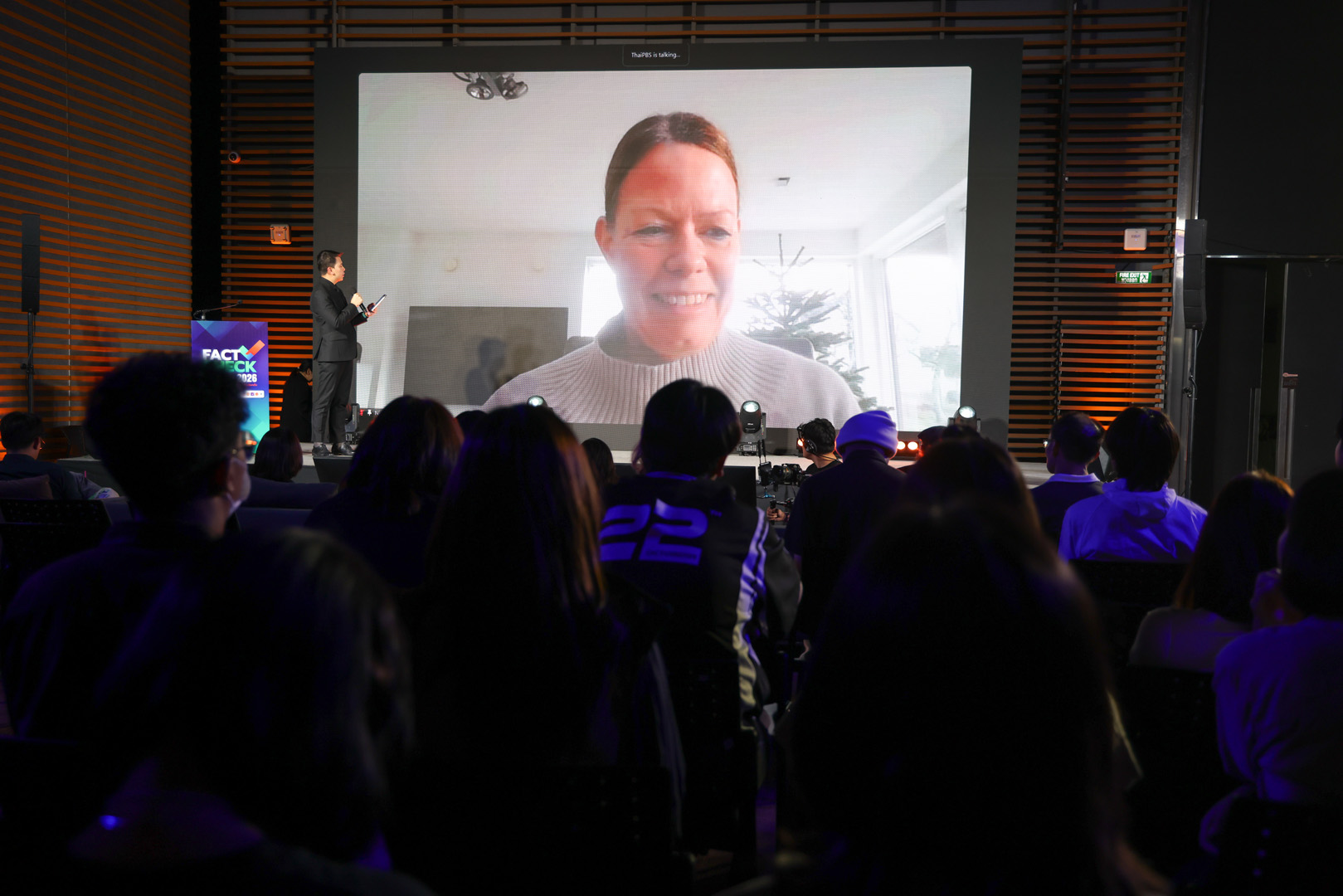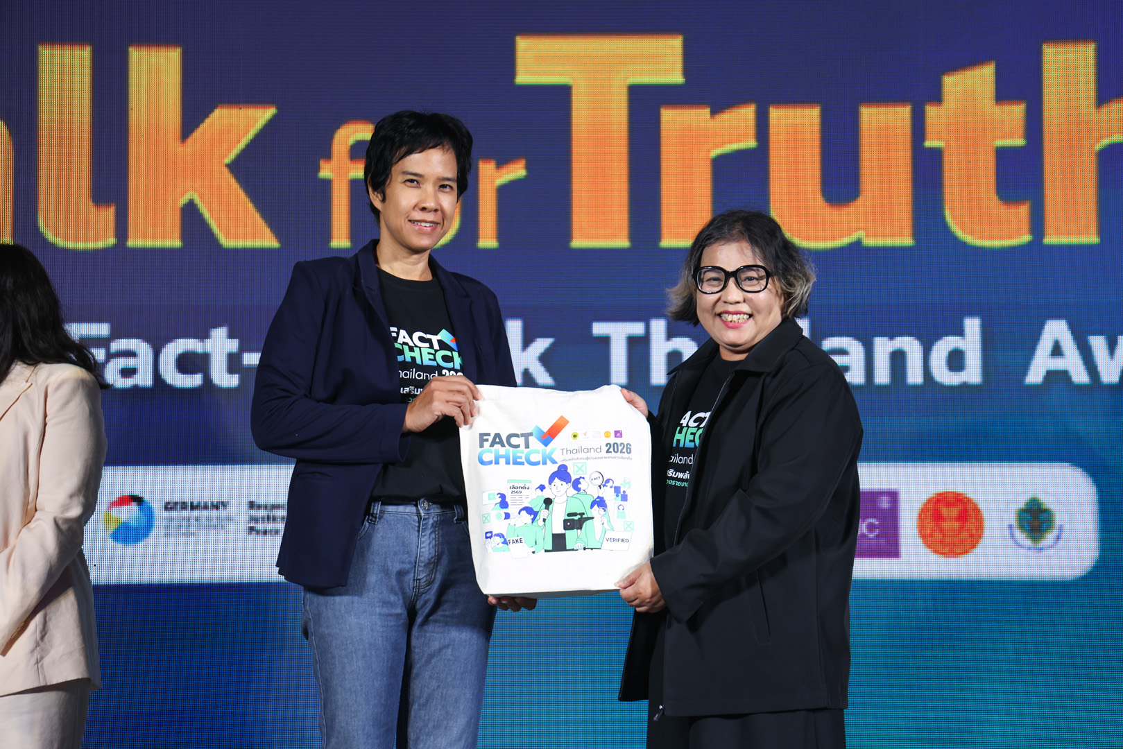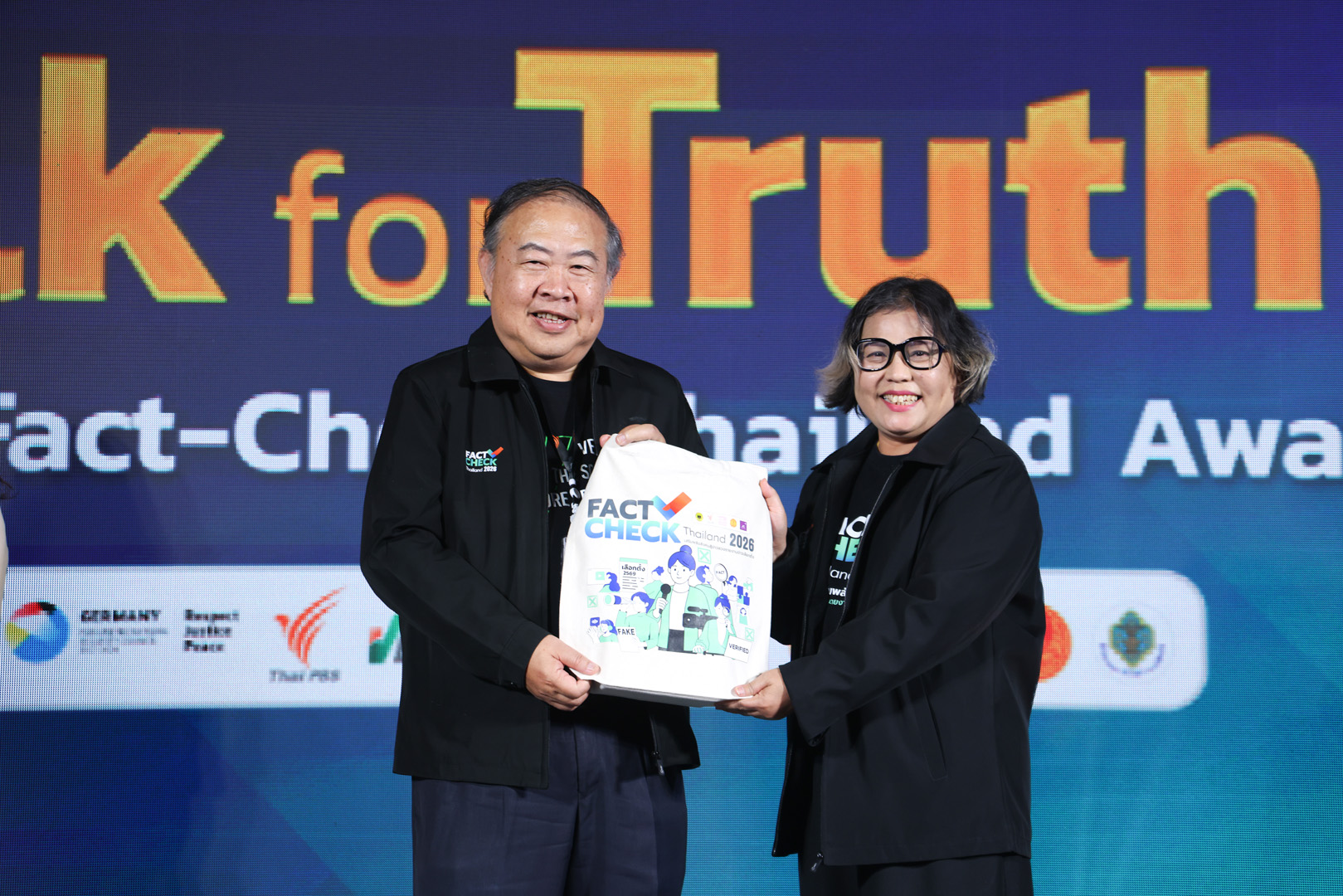 คุณอดิศักดิ์ ลิมปรุ่งพัฒนกิจ รองผู้อำนวยการ ส.ส.ท. หรือ ไทยพีบีเอส กล่าวถึงการจัดงานในครั้งนี้ว่า “ในฐานะที่ Thai PBS คือสื่อสาธารณะที่ยืนหยัดบนหลักการข้อมูลที่ถูกต้อง เที่ยงตรง และโปร่งใส การจัดงาน Talk for Truth และพิธีประกาศรางวัล Fact-Check Thailand Award 2026 ถือเป็นหมุดหมายสำคัญของสังคมไทยก่อนเข้าสู่การเลือกตั้งปี 2569 ซึ่งคาดว่าข้อมูลบิดเบือนจะทวีความรุนแรงมากขึ้น การตรวจสอบข้อเท็จจริง จึงมีบทบาทสำคัญต่อการตัดสินใจของประชาชน และต่ออนาคตของประเทศ”