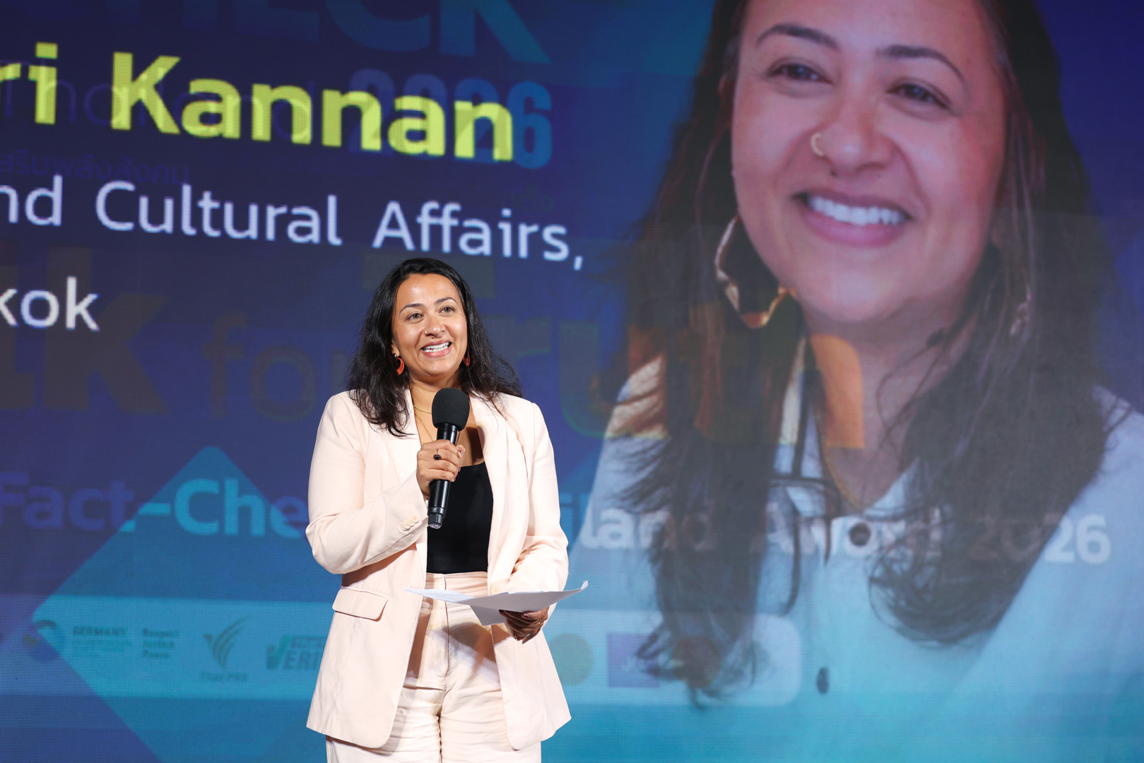 คุณ Sweta Madhuri Kannan เลขานุการเอก สถานเอกอัครราชทูตเยอรมนีประจำประเทศไทย กล่าวเปิดงานว่า เวที Fact-Check Thailand 2026 ถือเป็นหมุดหมายสำคัญของความร่วมมือระหว่างภาคส่วนต่าง ๆ ในช่วงที่ประเทศไทยกำลังเตรียมจัดการเลือกตั้ง ท่ามกลางบริบทความไม่แน่นอนทางการเมือง โดยย้ำว่าการรายงานข่าวการเลือกตั้งอย่างเป็นกลางและตั้งอยู่บนข้อเท็จจริงเป็นหัวใจของกระบวนการประชาธิปไตย
