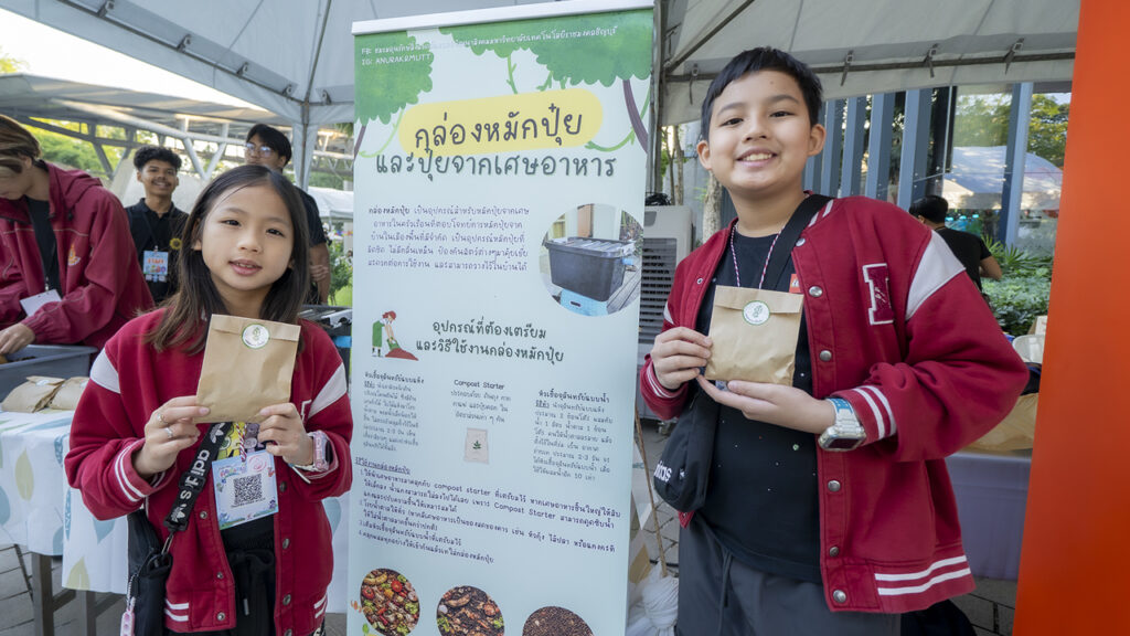ด.ช.ปัณณพัฒนา หิรัญศิริวัฒนา น้องปัณณ์ นักเรียนชั้น ป.6 และ ด.ญ.ปุณยานันท์ หิรัญศิริวัฒนา น้องปุณณ์ นักเรียนชั้น ป.2 บอกว่า รู้สึกดีใจที่ได้มาเที่ยวงานวันเด็กที่ไทยพีบีเอสเป็นครั้งแรก พร้อมเลือกสวมบทบาทฮีโร่สีแดง “พี่เปรี้ยงปร้าง” โดยทั้งสองได้เรียนรู้การรักษาสิ่งแวดล้อมผ่านกิจกรรมหมักปุ๋ยจากเศษอาหาร ด้วย “กล่องหมักปุ๋ย” อุปกรณ์ที่เหมาะกับครัวเรือนในเมือง ใช้งานสะดวก ไม่มีกลิ่น และหลังจบกิจกรรมตั้งใจจะนำความรู้ไปปลูกต้นไม้และดูแลสิ่งแวดล้อมต่อไป