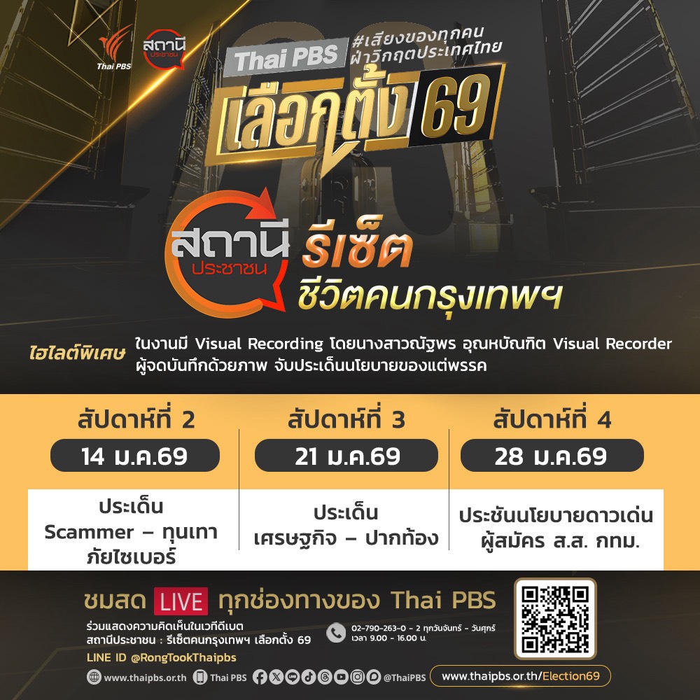 ทั้งนี้ สามารถติดตามรายการพิเศษ “สถานีประชาชน รีเซตชีวิตคนกรุงเทพฯ” ได้ทุกวันพุธตลอดเดือนมกราคม 2569