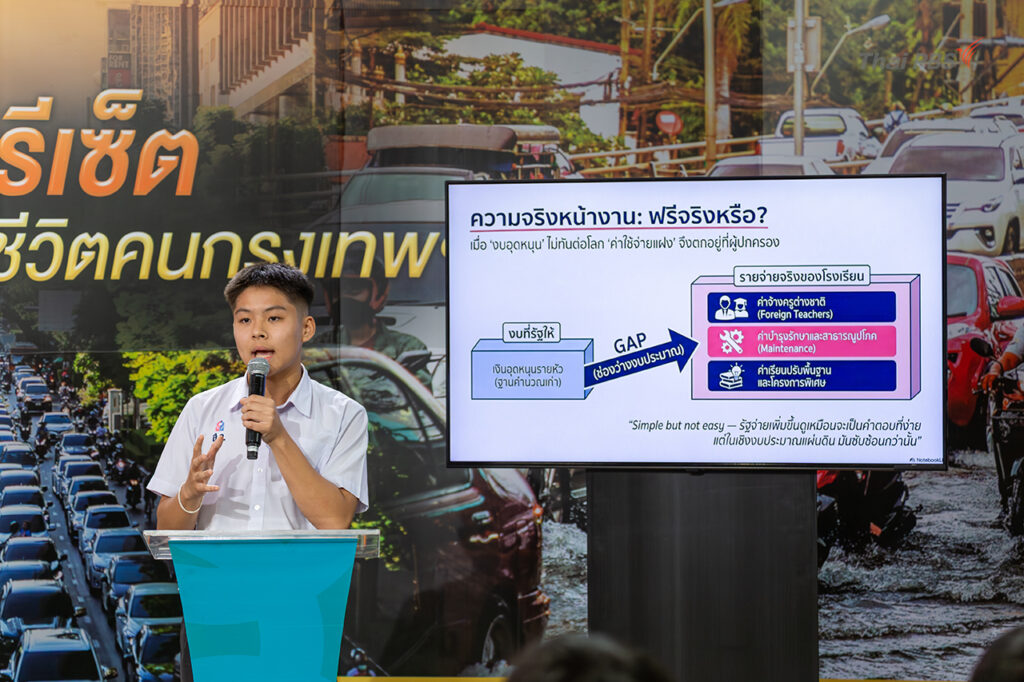 สำหรับเวทีแสดงความคิดเห็นของเยาวชน เริ่มจาก นายปัณณทัต เจียมศิริกาญจน์ ตัวแทนนักเรียนโรงเรียนสวนกุหลาบวิทยาลัย กล่าวถึงนโยบายการศึกษาเด็กไทยว่า แม้นโยบาย “เรียนฟรี” จะครอบคลุมค่าใช้จ่ายหลัก 5 ด้าน ได้แก่ ค่าเล่าเรียน หนังสือ อุปกรณ์ เครื่องแต่งกาย และกิจกรรม แต่ยังไม่สามารถเรียกได้ว่าเรียนฟรีอย่างแท้จริง เนื่องจากยังมีค่าใช้จ่ายอื่น ๆ เช่น ค่าบำรุงการศึกษา ที่ผู้ปกครองต้องรับภาระ
