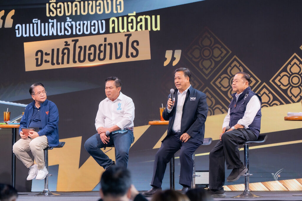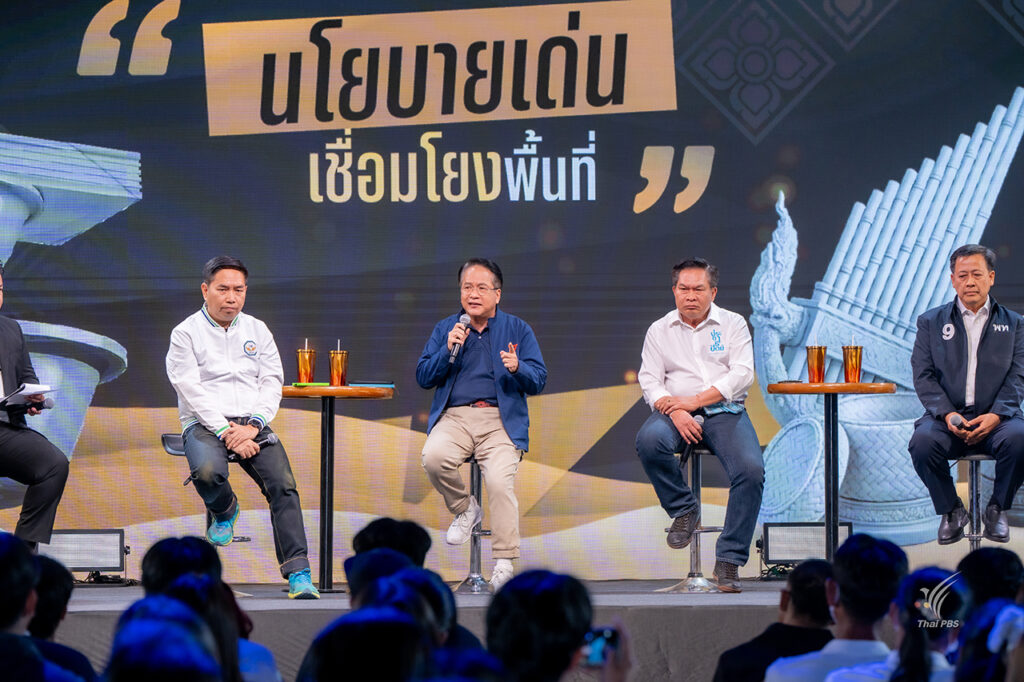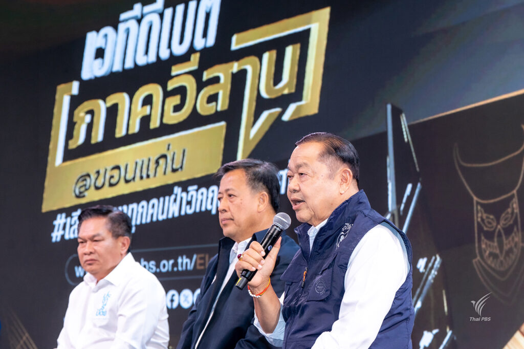 ไทยพีบีเอส จัดเวที “ดีเบตภาคอีสาน” ฟังวิสัยทัศน์ 5 พรรคการเมือง ตีโจทย์ภาพอนาคตในอีก 5 ปี “อีสานอุกอั่งเอ้า” ความอึดอัดใจ ความสิ้นหวัง ที่เป็นฝันร้ายของคนอีสาน ร่วมหาทางออกปากท้อง–น้ำ–ที่ดิน–คุณภาพชีวิต ให้คนอีสานฝันดี