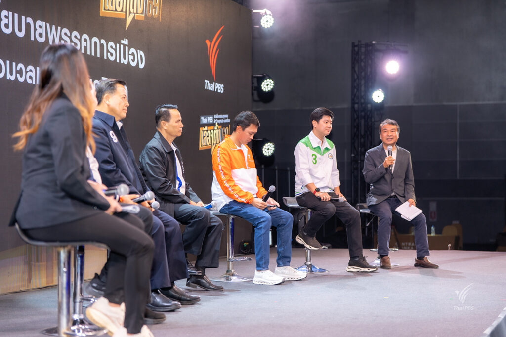 ติดตามเวที “เสนอนโยบายพรรคการเมืองร่วมกับสื่อมวลชนในส่วนภูมิภาค” ครั้งต่อไป ในพื้นที่ภาคใต้ได้ ในวันที่ 30 ม.ค. 69 ที่ เซ็นทรัล หาดใหญ่ และเตรียมพบกับเวทีดีเบตครั้งพิเศษที่ ไทยพีบีเอส ร่วมกับ 8 พันธมิตรสื่อ ได้แก่ ไทยรัฐ, มติชน, ไทยพีบีเอส, พีพีทีวี, The Standard, The Reporters, 101 PUB และ Today จัดเวที ตอบโจทย์ 8 บรรณาธิการ How to กู้ “ไทยทานิค” เศรษฐกิจไทย ตั้งคำถามเจาะลึกหาทางแก้ปัญหาเศรษฐกิจไทยกับพรรคการเมืองต่าง ๆ ในวันที่ 3 กุมภาพันธ์ 2569 เวลา 17.00–19.00 น. ติดตามเนื้อหาย้อนหลังและรายละเอียดเพิ่มเติมได้ที่ www.thaipbs.or.th/election69