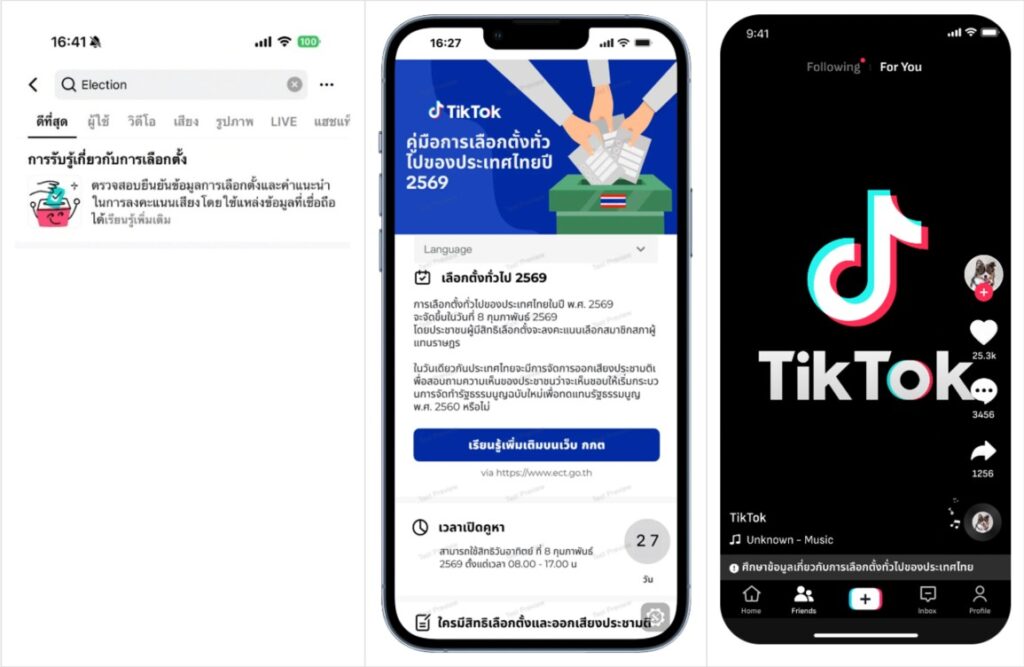 วันที่ 27 ม.ค. 69 องค์การกระจายเสียงและแพร่ภาพสาธารณะแห่งประเทศไทย หรือ ไทยพีบีเอส โดย Thai PBS Verify, คณะกรรมการการเลือกตั้ง (กกต.) และ Cofact ร่วมกันยกระดับการเข้าถึงข้อมูลที่น่าเชื่อถือ ตรวจสอบได้ ผ่าน “ศูนย์ข้อมูลการเลือกตั้งไทยปี 2569” (In-App Election Center) บนแพลตฟอร์ม TikTok ซึ่งจะทำหน้าที่เป็นศูนย์กลางให้ประชาชนเข้าถึงข้อมูลที่ถูกต้องเมื่อค้นหาเกี่ยวกับการเลือกตั้งลงในช่องค้นหาบนแพลตฟอร์ม TikTok ซึ่ง Thai PBS Verify และ Cofact เป็น 2 หน่วยงานที่มีบทบาทสำคัญในการสนับสนุนข้อมูลตรวจสอบ (Fact-check) และคัดกรองข่าวจริง ช่วยลดการแพร่กระจายของข่าวลวงและข้อมูลคลาดเคลื่อนในสังคมออนไลน์ ตลอดระยะเวลาที่ผ่านมาตั้งแต่ 1 ต.ค. 68 – 21 ม.ค. 69 Thai PBS Verify ได้ตรวจสอบข่าวไปแล้ว 340 ข่าว แบ่งเป็น 5 หมวดหมู่ ได้แก่ สังคมและสุขภาพ, การเมือง, รอบโลก, วิทยาศาสตร์และเทคโนโลยี, สิ่งแวดล้อมและภัยพิบัติ สะท้อนให้เห็นถึงความเข้มข้นของข้อมูลข่าวสารที่ประชาชนต้องเผชิญในแต่ละวัน และในปี 2569 ยังเป็นอีกช่วงเวลาสำคัญที่ประเทศไทยมีจัดการเลือกตั้ง บทบาทของการตรวจสอบข้อเท็จจริงจึงยิ่งทวีความสำคัญมากขึ้น ท่ามกลางปริมาณข้อมูลทางการเมืองที่เพิ่มสูง และการแพร่กระจายของข่าวลวงและข้อมูลบิดเบือนในสื่อออนไลน์อย่างรวดเร็ว